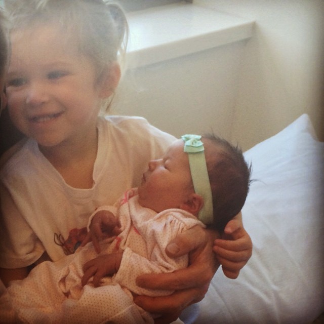 She had a lot of amniotic fluid in her stomach and threw up all day the next day and didnt feed too well but since then has gotten much better. Her feeding has picked up since then and we are completely in love. Her big sister is too! Here are some pictures.