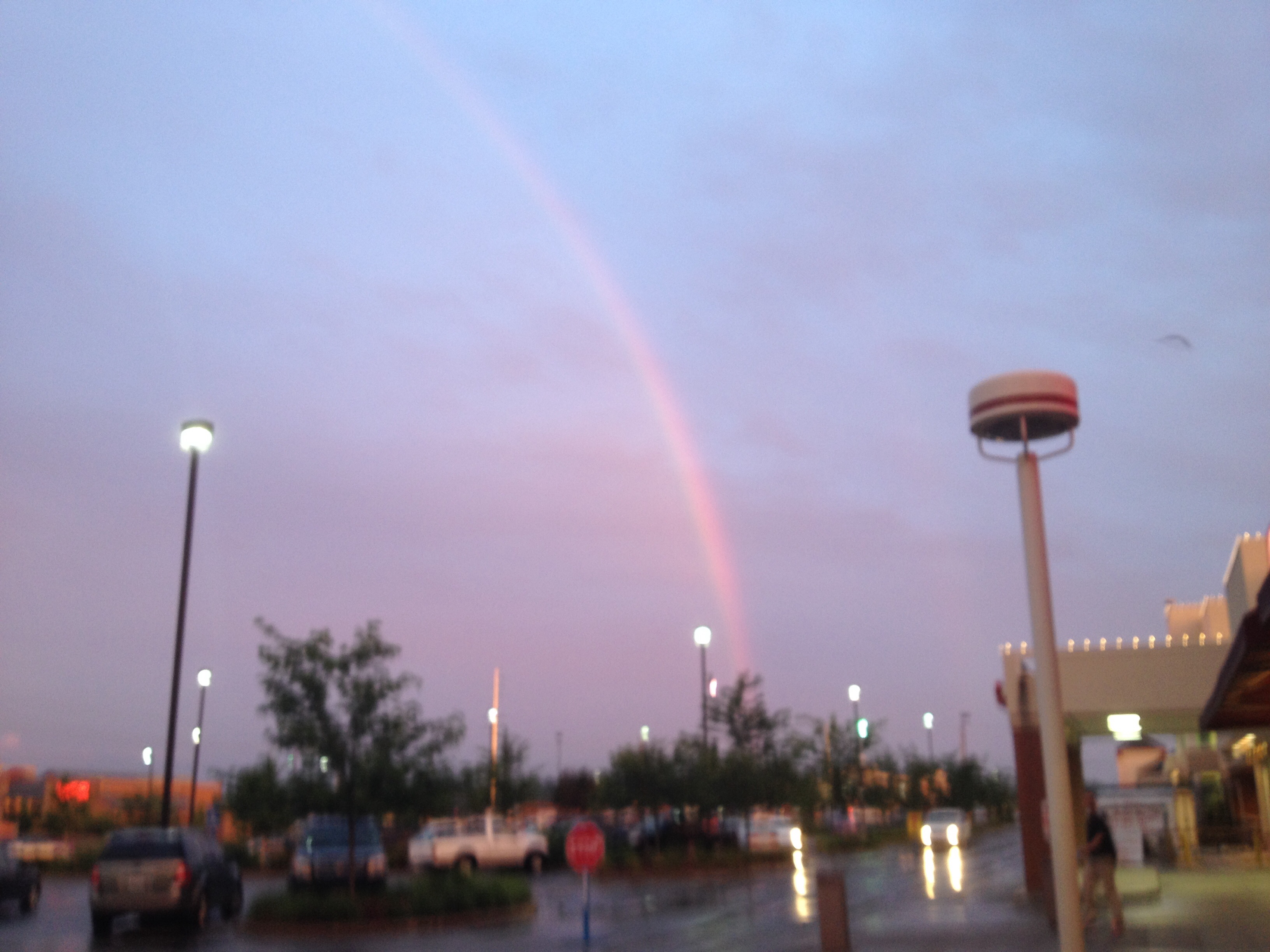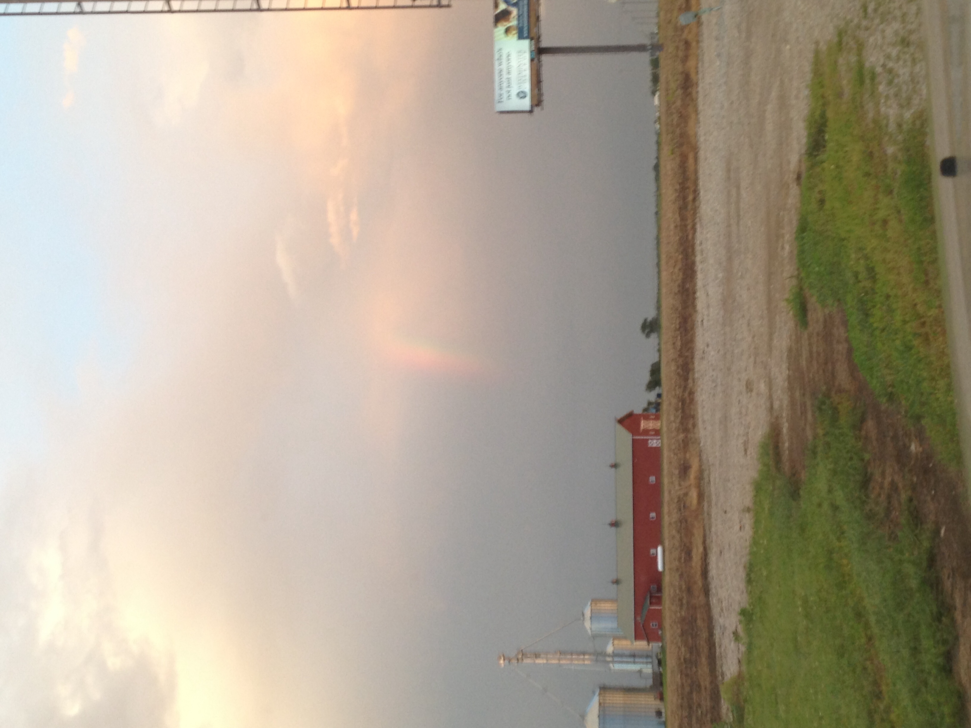 The other 2 pics are both legs of the rainbow from last night. It was a double, but too dusky for my phone to capture it. Same for the top of the rainbow, it blended in too well with the sky for my phone, but it was AWESOME to see a full rainbow!!