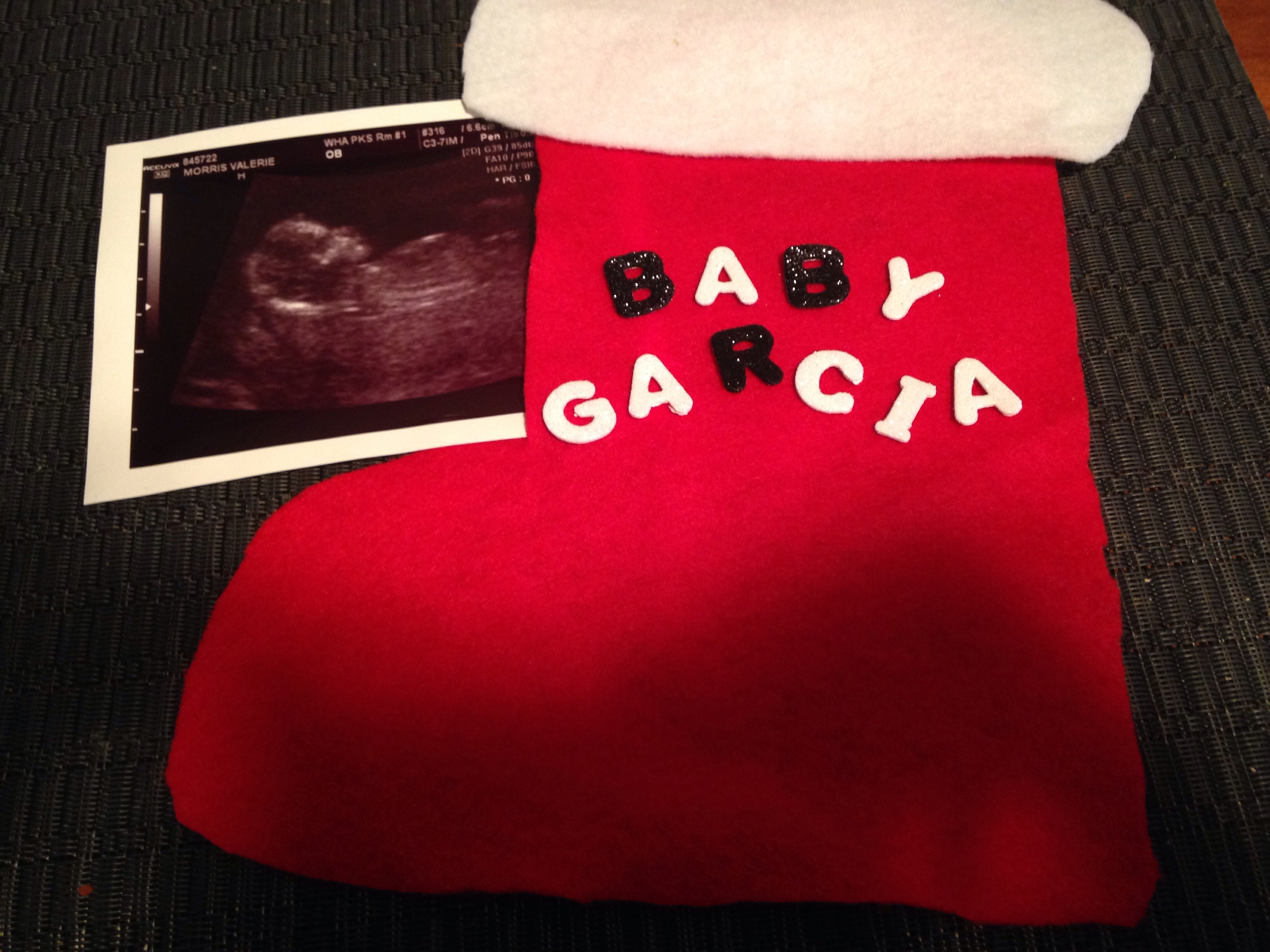 For privacy, I cropped out the picture to hide our names. The original announcement said: