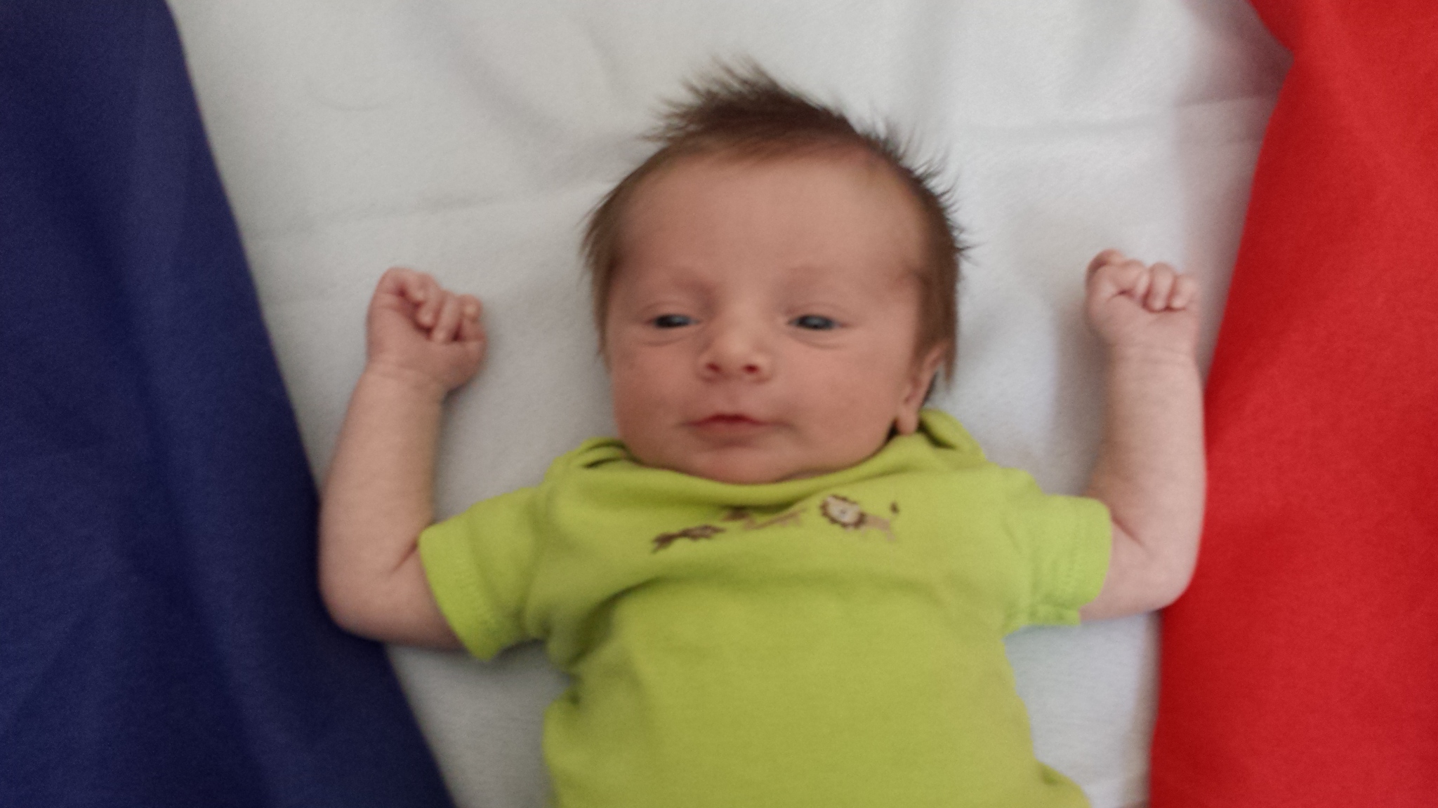 The little Francophile is 12 days old now and already rooting for France in the World Cup!