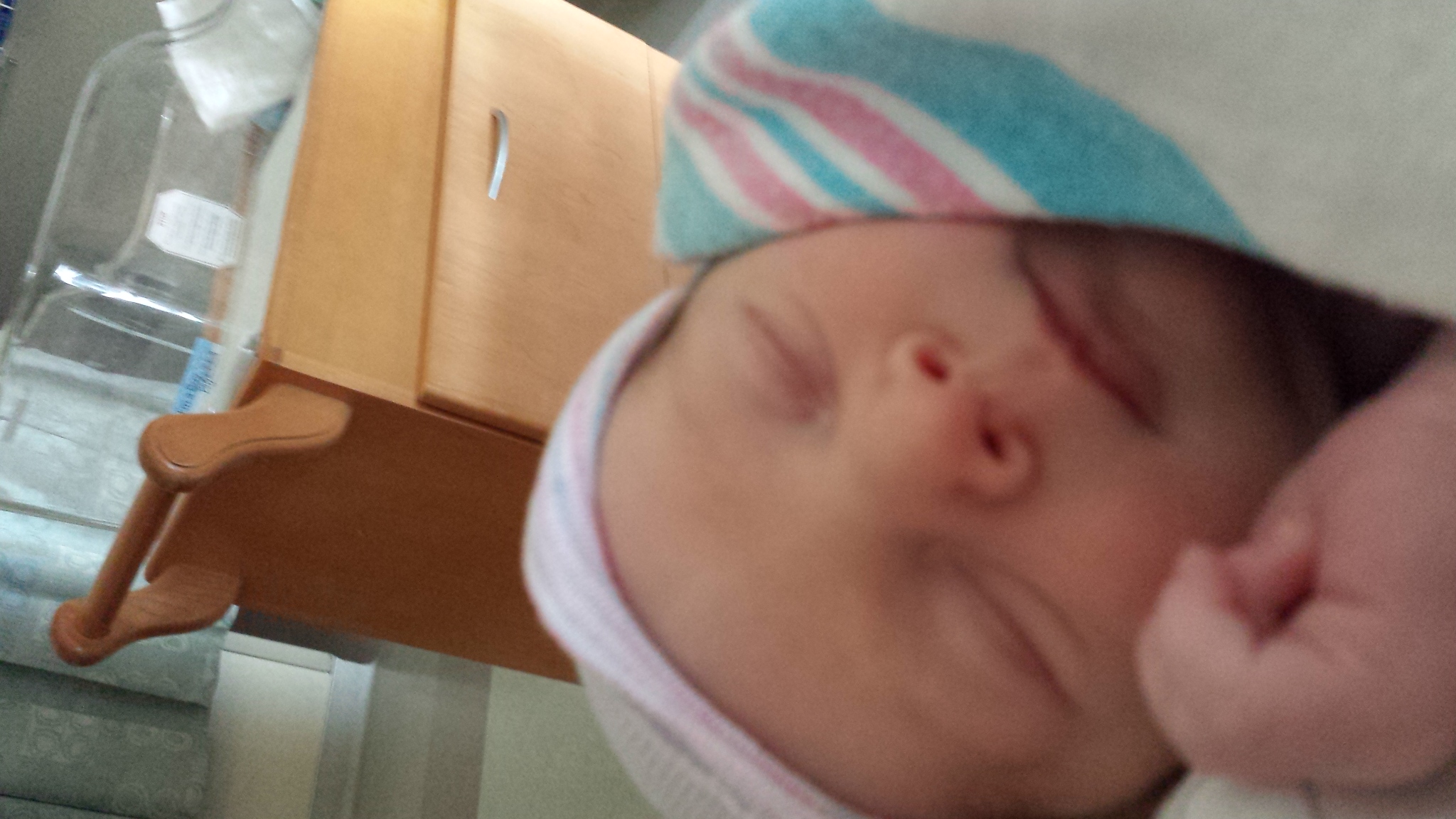 DH finally got home at 9:20am.  He later admitted that as much as he was hoping it was the real deal, we'd had so much false alarms that he wasn't rushing home.  Plus, the contractions were 5 minutes apart, and L&D had told us not to come back until 3-5.  We rushed to put away the grocery, take out the dogs, arranged a ride to work for my DD and moved the laundry to the dryer.  Then another contraction hit and DH became extremely apologetic for having made me wait.  We got the hospital at 10am and was admitted immediately under the direction of the doctor before I had even been examined.  I was 5cm with bulging bag of waters on arrival.  I was going to try unmedicated delivery - but that thought lasted 30 seconds and I asked for the epidural.  It was slow in L&D and the anesthesiologist had my epidural in by 10:30am - it was glorious.  They did another check right before placing the epidural and in the 30 minutes I was there I had already gone to 90% effaced and 5-6cm.  The nurse came to check on me every hour after the epidural and by 1pm she was calling the doc to let him know that I was at 8-9 but LO was still high.  He came down to break my water and I sent DH for a quick lunch - warning that things would go quickly after then.  The nurse told him we still had some time to go and that he didnt need to rush.