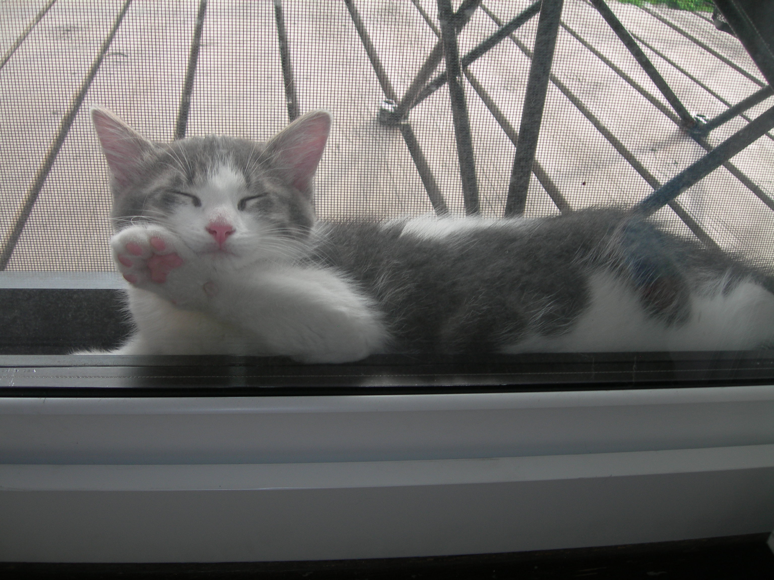 Reggie used to love laying in between the sliding glass door and the screen when he was small enough.