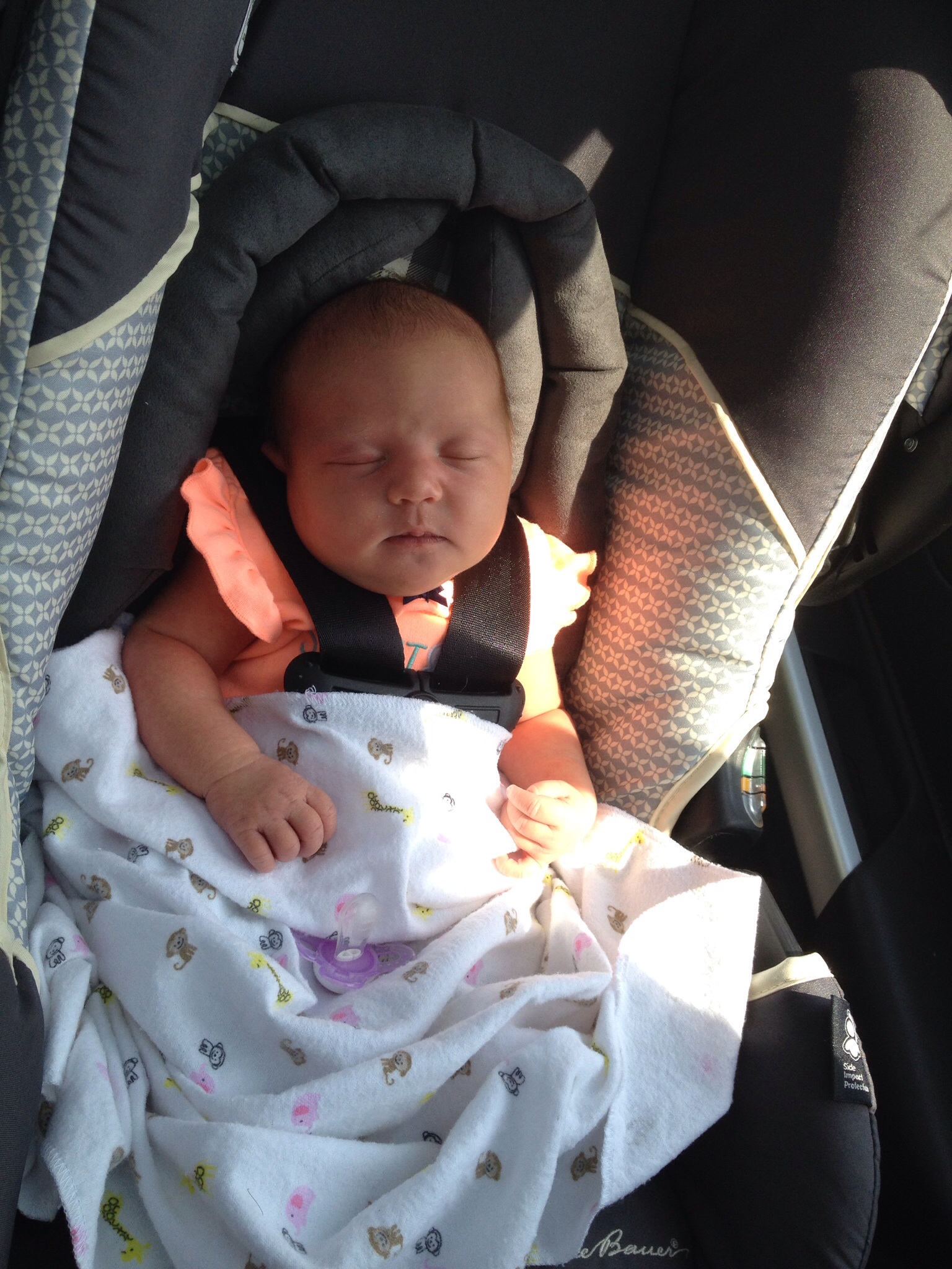 Finally have a chance to get back on with you ladies! Sorry I've been MIA! I hope every one & their LO's are great! My sweet little lady Hannah Mae made her debut on Tuesday June 24, 2014! She was born at 9:12 pm 8lbs 2oz 20.5 inches after an unmedicated 7 hour labour and she is absolutely perfect! Tuesday was a normal day, MIL was coming over for lunch, so I went out to get some fresh stuff and decided to grab some caster oil, thinking why not, nothing else has worked! When I got home around 11, I took it with some OJ and baking soda and then made lunch. At about 2 pm just as we were done eating, I had some cramping and back pain and it began! By 2:30 the contractions were 10 mins apart, by 3 they were 6 mins apart (I called DH), 3:30 they were 4 mins apart. We arrived at the hospital at 4 and they were 2 mins apart (I guess caster oil does actually work). I was checked and was 4 cms!! Dr advised I would deliver the following day. They checked me at 6:30 and I was 6-7 cms with contractions every 1.5 mins. Around 7:30 I was bouncing on the ball when my water broke, the nurse checked me and I was 8 cms!! I then went into the shower to labour as the contractions were right on top of each other and brutal!the shower was amazing, I was so relaxed for about 10 mins when I had an unbelievable urge to push. DH called the nurse in to tell her but her initial response was that she didn't believe me and did some breathing with me to relax, told me his was transition was the worst part but that I could do it. As she was talking me through it she realized I wasn't being dramatic and had me get on the bed for another check and found that I was 10cms and ready to go! Plus she had finally flipped from sunny side up...just in the nick of time. After about 45 mins of pushing, resulting in 2nd degree tares from her shoulders getting stuck, my little lady entered the world! Everything has been wonderful since we've been home! Nursing is going well with the assistance of a nipple shield (the person who invented them she be given a gold medal & and a large raise). She is a sleeper and I have to wake her up for everything, I'm enjoying that now cause I know it will change soon! Thank you ladies for being there during my pregnancy, without you I would have been more of a worry wart than I was!! I'm looking forward to going through this adventure with all of you! And now what you actually clicked on her birth story for...