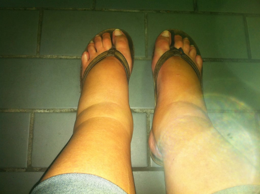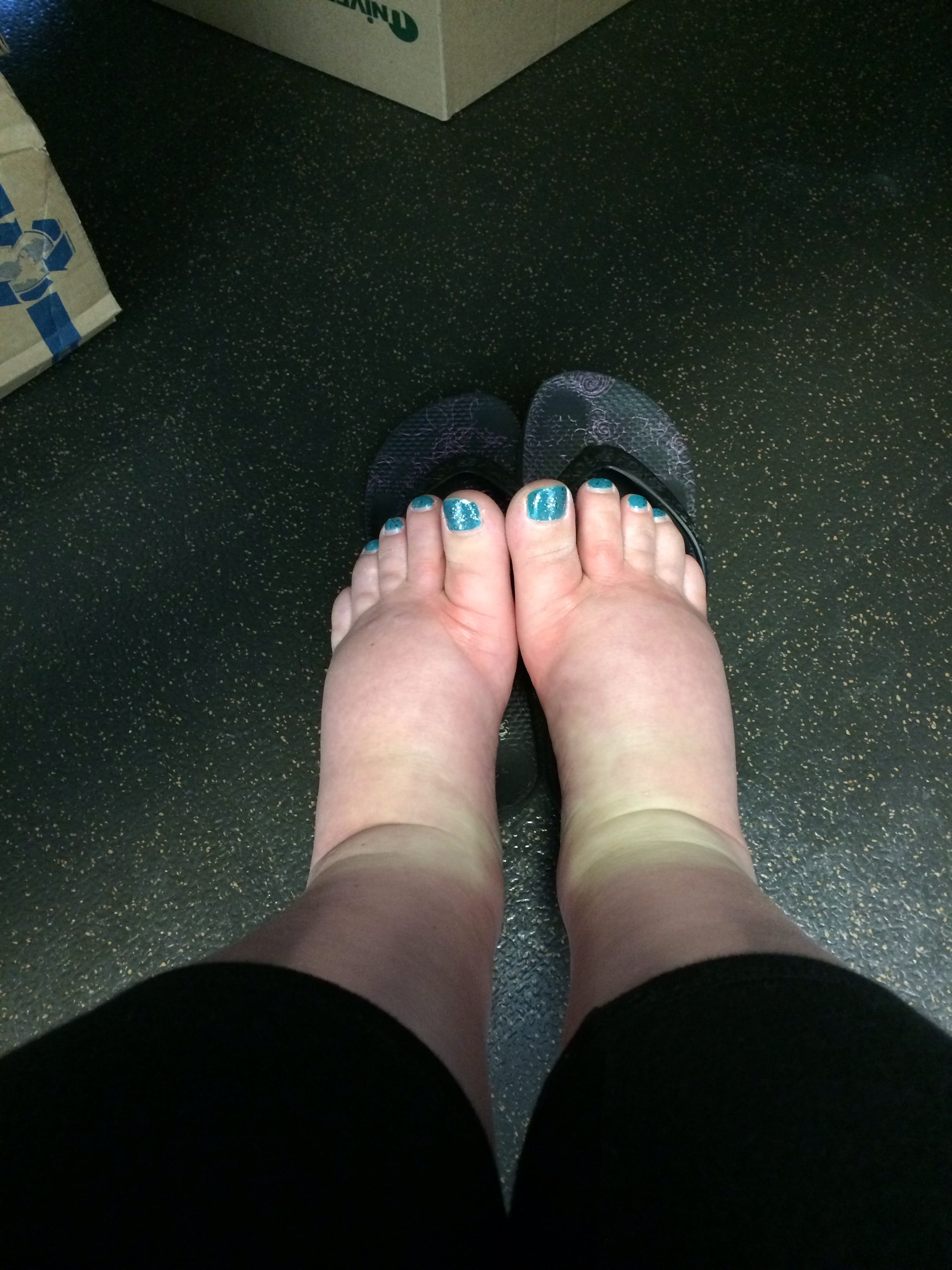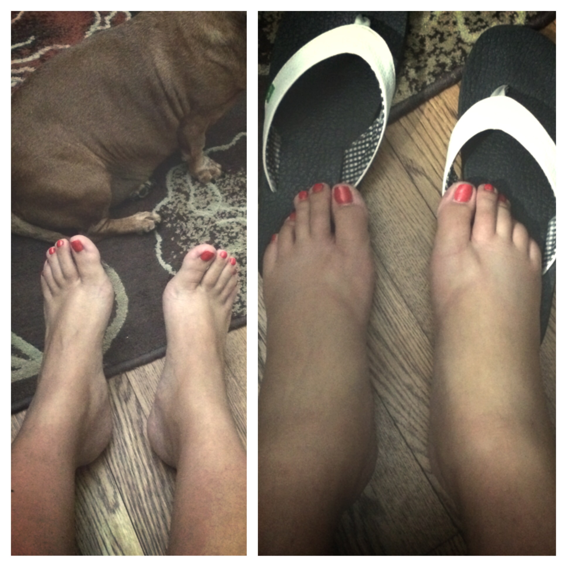 My feet swell a little by the end of the day, but most of the swelling is in my face. I look like I have three chins. :'(