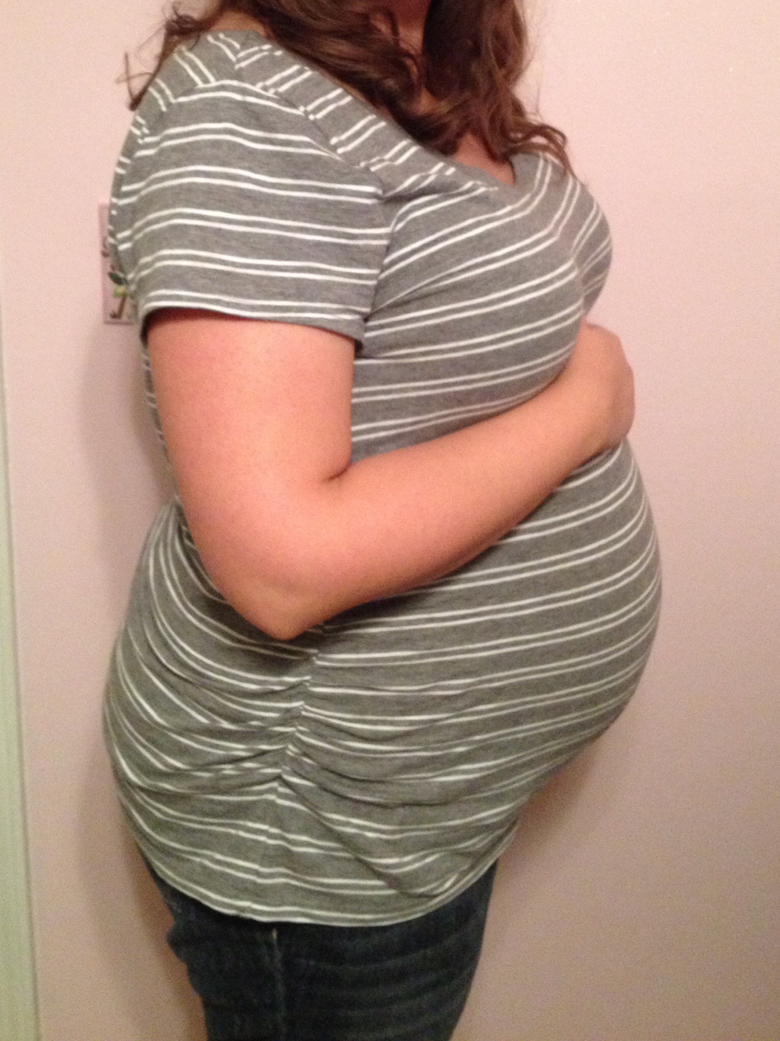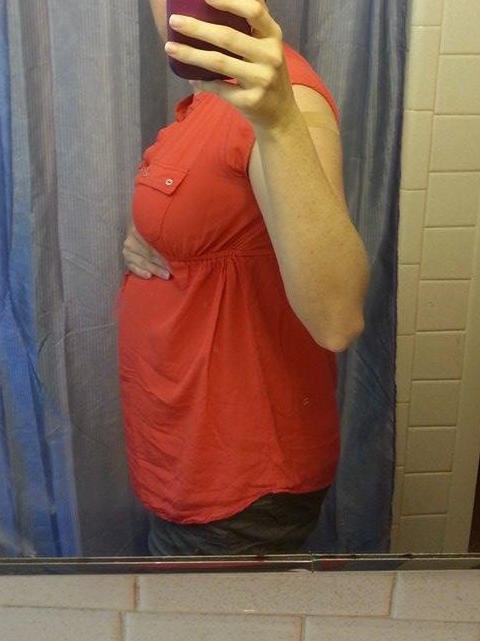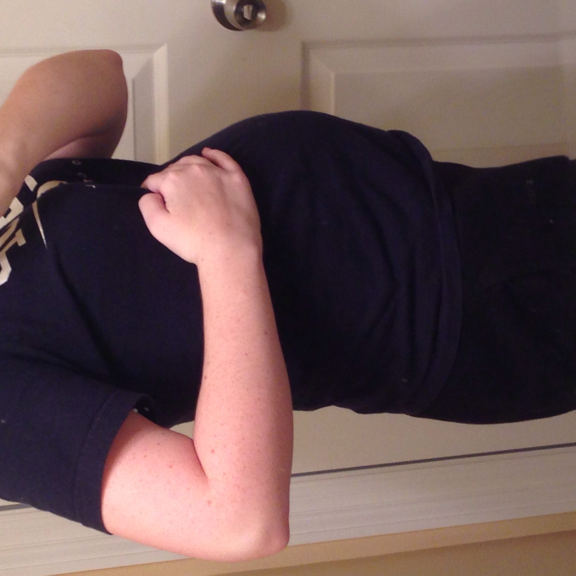 I think I wear the same shirt every other week... 27+2 (also, apparently I carry really high so I have to pull in my shirt at my "waist", otherwise my whole front side is one large bumpy mass)