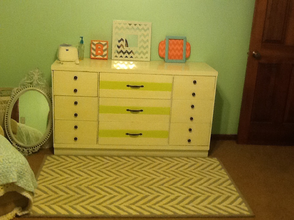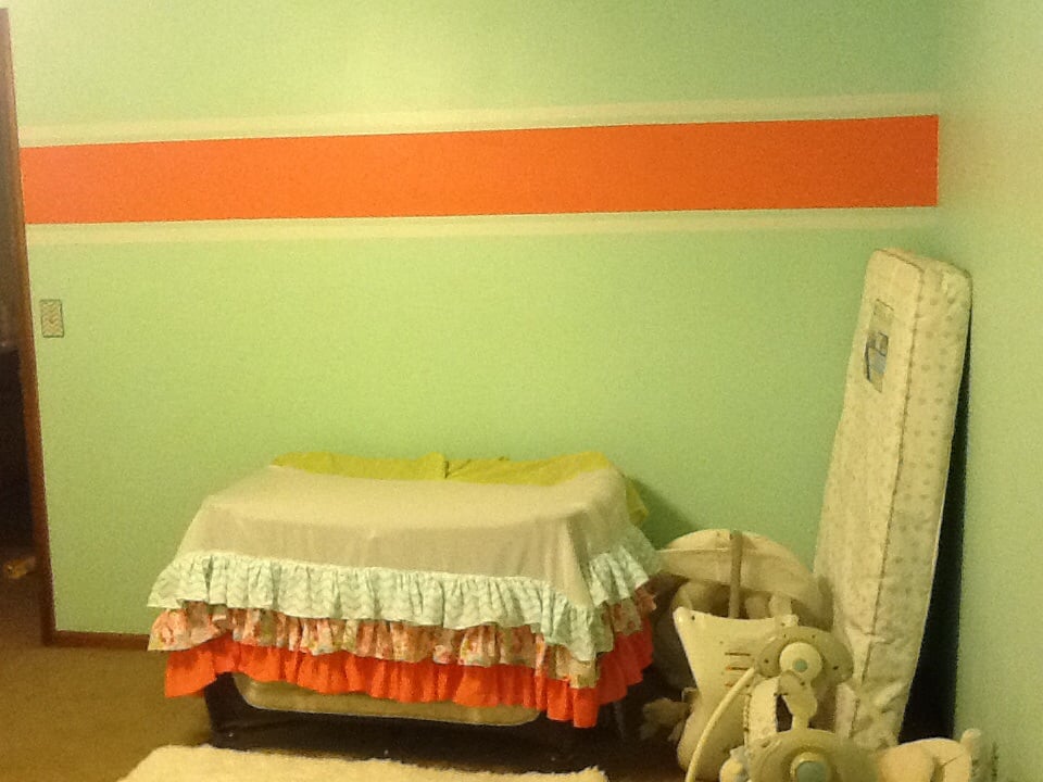 • My mom made the crib skirt, now we just need to convert the toddler bed back to crib and get the crib in. Plus start hanging artwork and dh is refinishing an armoire