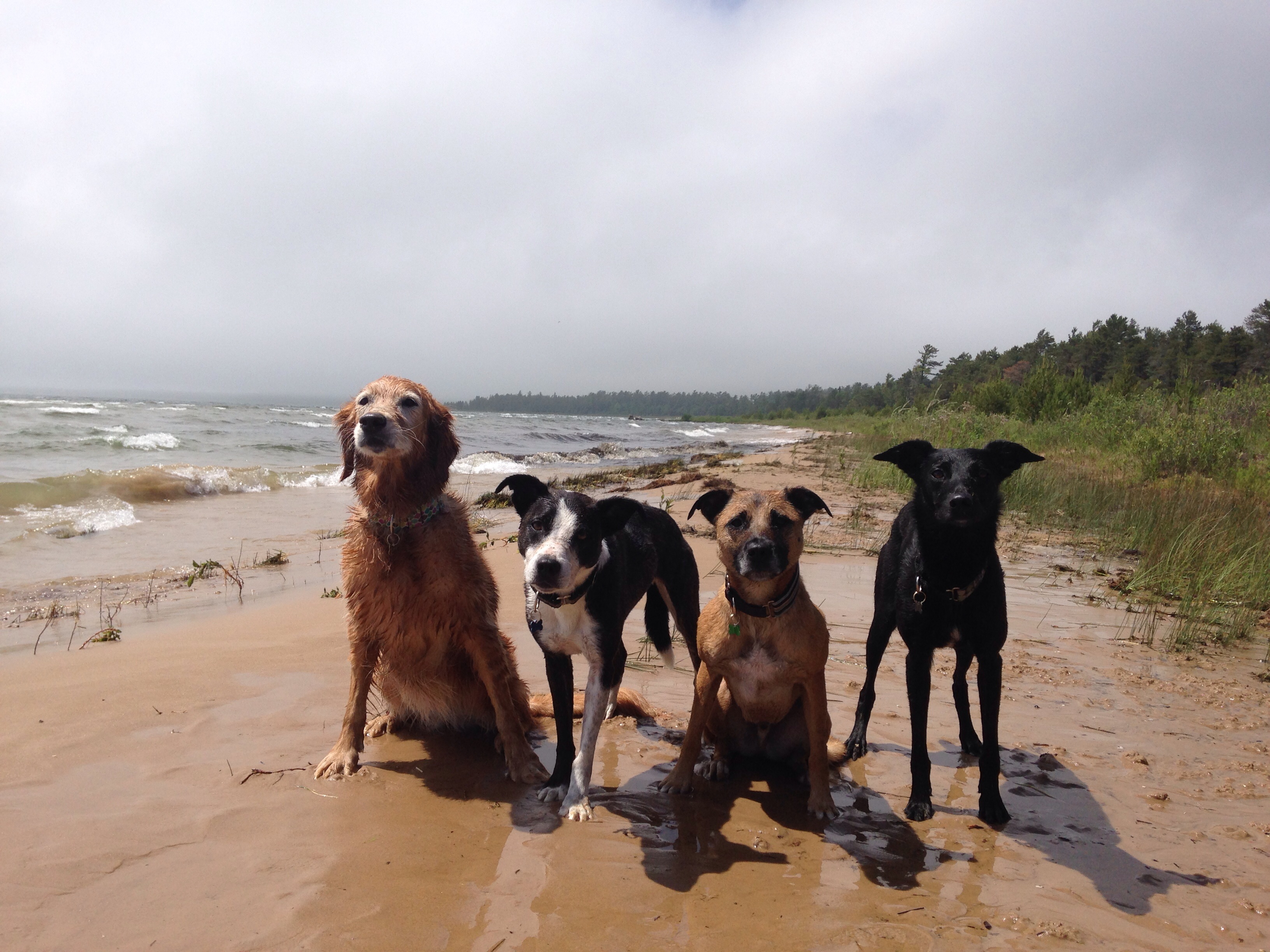 Happy Furbaby Friday! On Monday, DH and I traveled home to GA from the upper peninsula of MI and stopped with friends to let the dogs play on Lake Michigan. They had a blast!!! From L to R (also oldest to youngest!): Emma Vito Enzo Antic