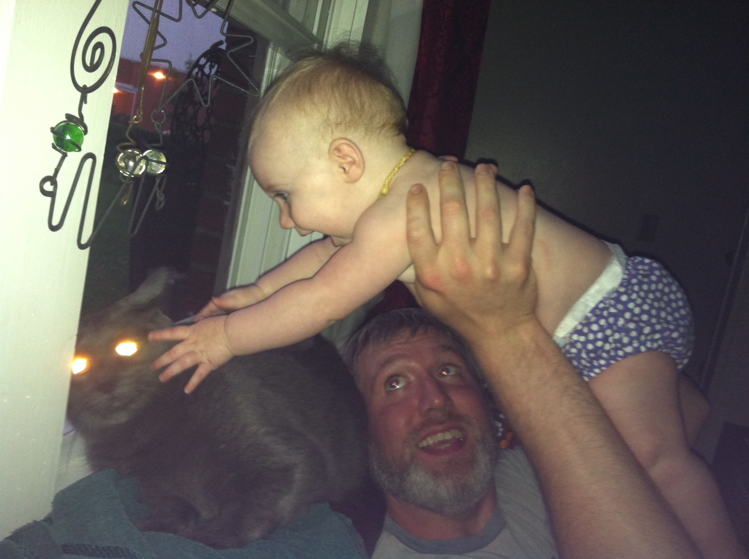 LO has banged her head a couple times on the hardwood- she does a roll flop and hits her head every time. It doesn't seem to phase her though lol. Dr said LO has a summer cold hopefully it will go away soon.