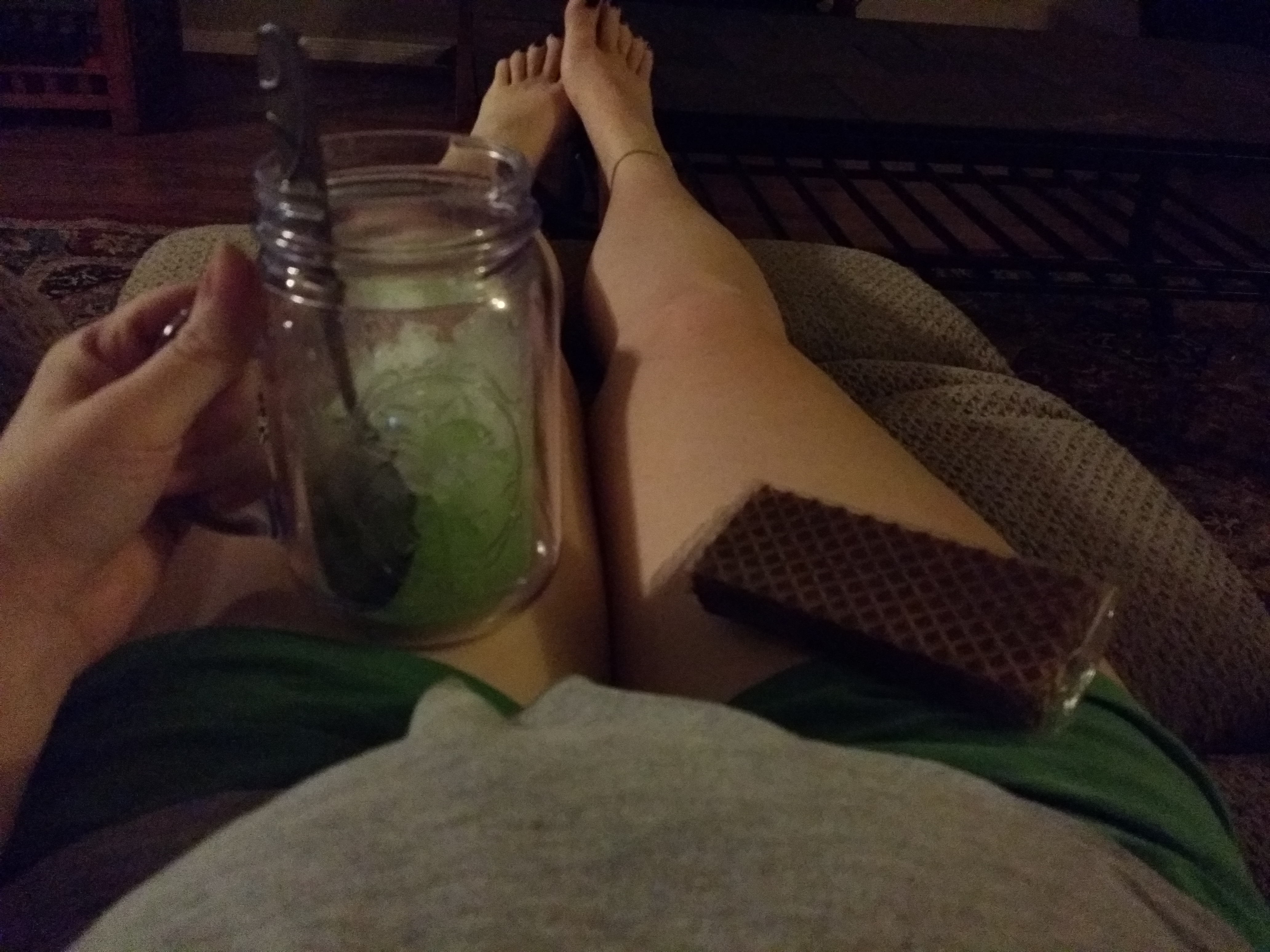 I had a long rough day with the boys. H just got home so I sent him upstairs to give the boys a bath and start bedtime routine while I sit, relax, and enjoy a nutty buddy bar and my version of a sour apple slush with crushed ice. So good!