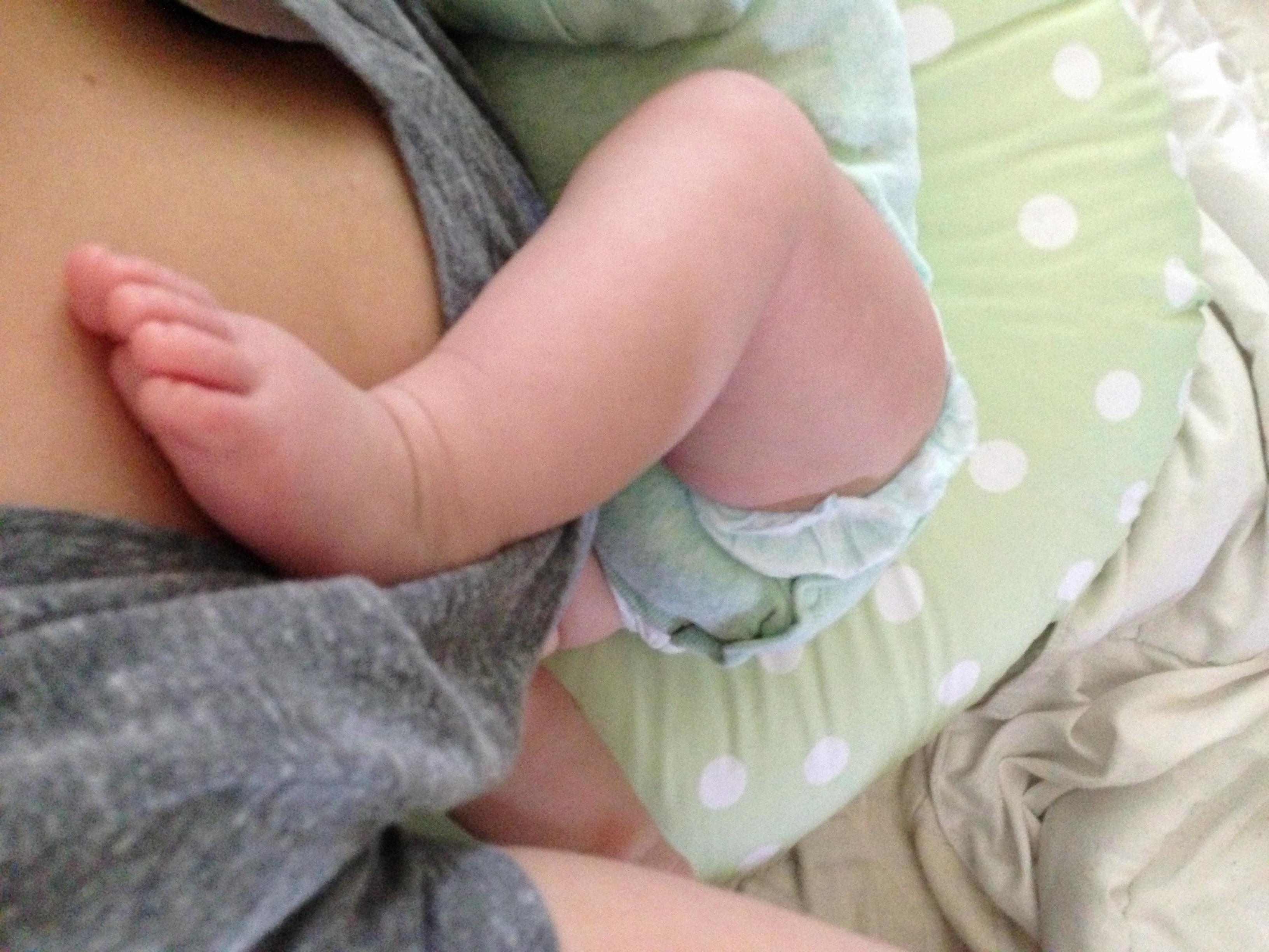 The way she moves her legs around while she's eating. She always ends ups with one cold foot flat on my arm or chest and I love it when she curls her little toes. I took a picture the other day because I want to always remember it.