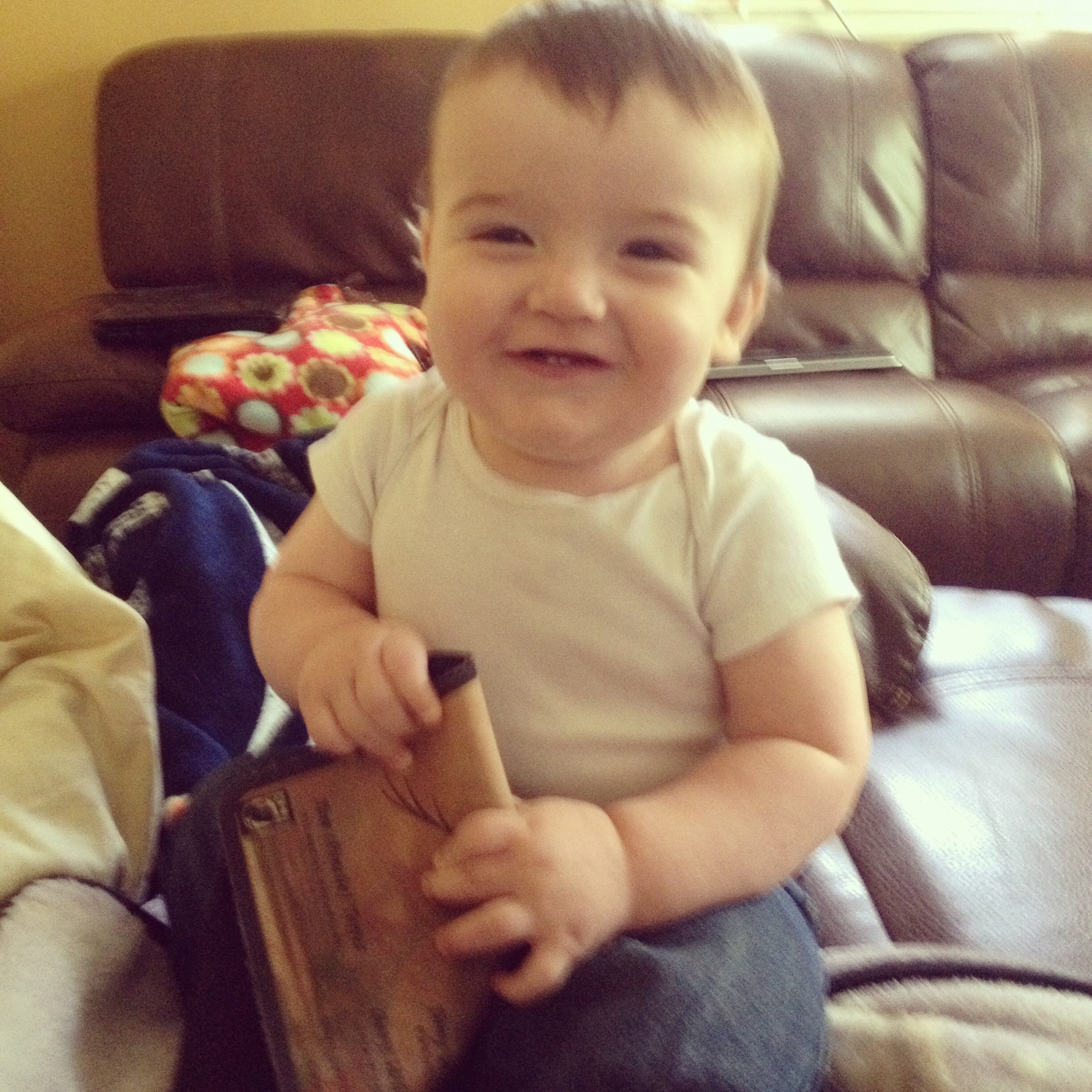 I have a few things to say today. First, @MittenJennie was oh so kind enough to do a Mommy & Me session for us this morning and Joey decided to be a serious Stanley for 99% of the photo shoot! I get home and decided to take a picture of him with my phone and I get the gem below!! It's a good thing he's cute!! Now to vent: My dad has had this on again, off again girlfriend for about 3 years now. Well lately it's been off again and she's been going psycho crazy. Going to bars, seeing other guys, blah blah blah. Well she was on her way to CA to watch her son graduate from film school and decided she "needed" my dad to come "save" her because she was having horrible anxiety and all this other crap so my dad flies out there to be with her and has been gone for 3 wks now. Well, last week he calls to tell us they are GETTING MARRIED!!!! So, they got married on 07/11 in Vegas. Awesome. This woman has done and said some wicked shit to/about our family. Needless, I'm not very happy about it but whatever, it's my dad's life and if he's happy then he's happy.
