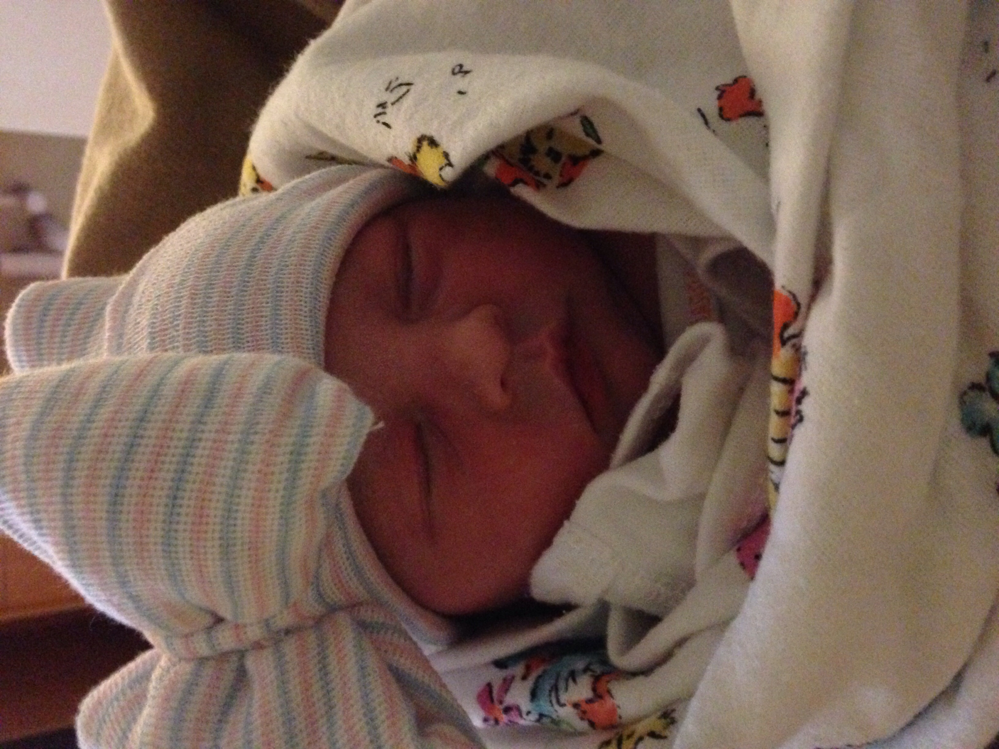 Contractions woke me up at 2am, by 3:30 they were getting more painful and at 4:45 I decided I was really in labor and woke DH up and told him, "I think it's time for us to go to the hospital". After packing a few last minute items, we were off and got to the hospital at 6am (we live an hour away...DH got us there in 40 minutes, lol). I got on the elevator while DH parked the car and some IDIOT got on there and had the nerve to go up ONE floor while I was huffing and puffing through contractions! (Cue death stare).
