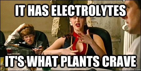 I just wanted to say that salts are electrolytes. And electrolytes are what your body craves. I don't drink water, I only drink Brawndo. It's the thirst mutilator.