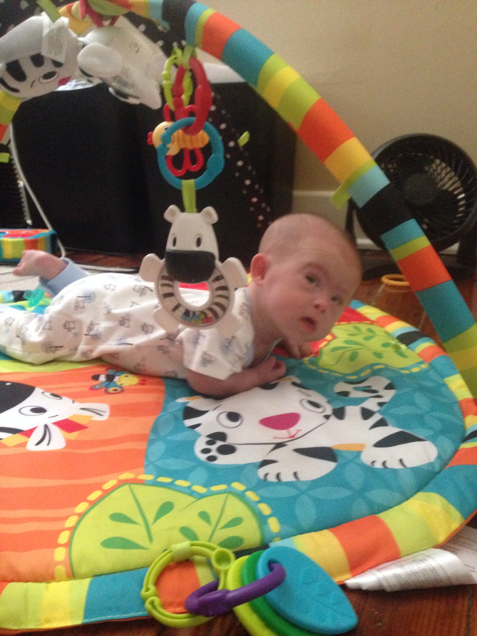 • Colton has been hanging out in his walker lately and he can move it just a little. He looks so proud if himself when he is moving :)