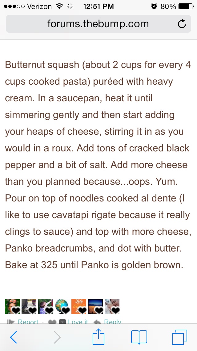 Re: Butternut squash/ cheese pasta recipe