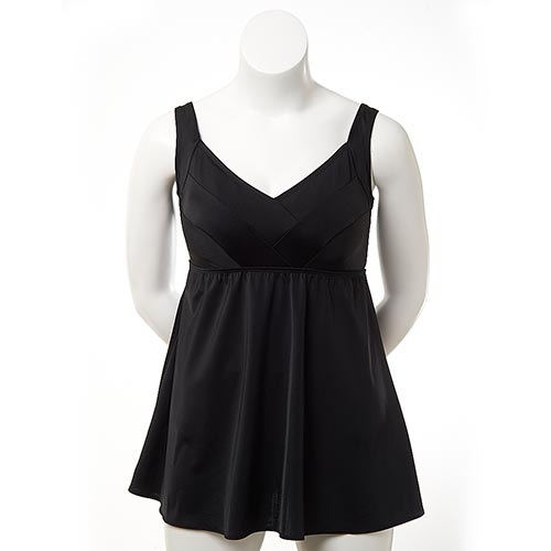 I just posted somewhere else about having luck finding a plus size bathing suit from Target. It's a one piece, grey and white chevron and very flattering!