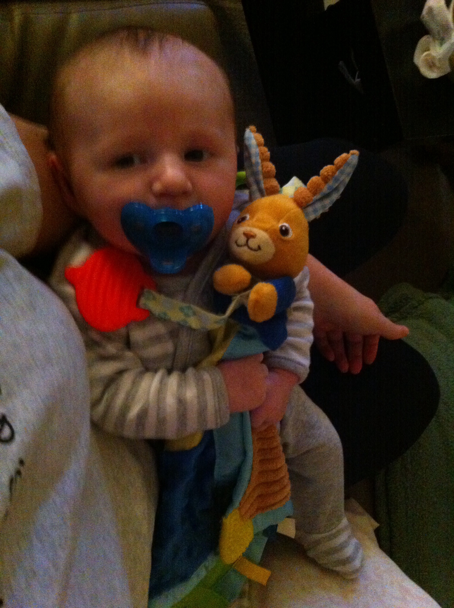 DS still sleeps swaddled with a+a blanket and often ends up sucking on the end once he busts the swaddle. I'm sure we aren't far away from creating another Issie fan!