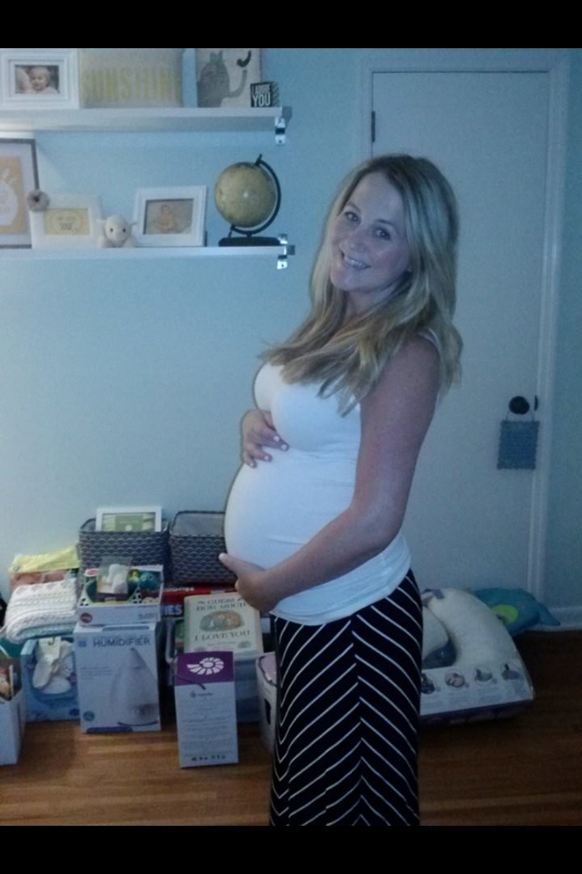 Everyone is looking fab! I remember when we were barely sporting bumps and now a few of us have outside babies. Crazy! This is 33+6 after our shower...I was exhausted!
