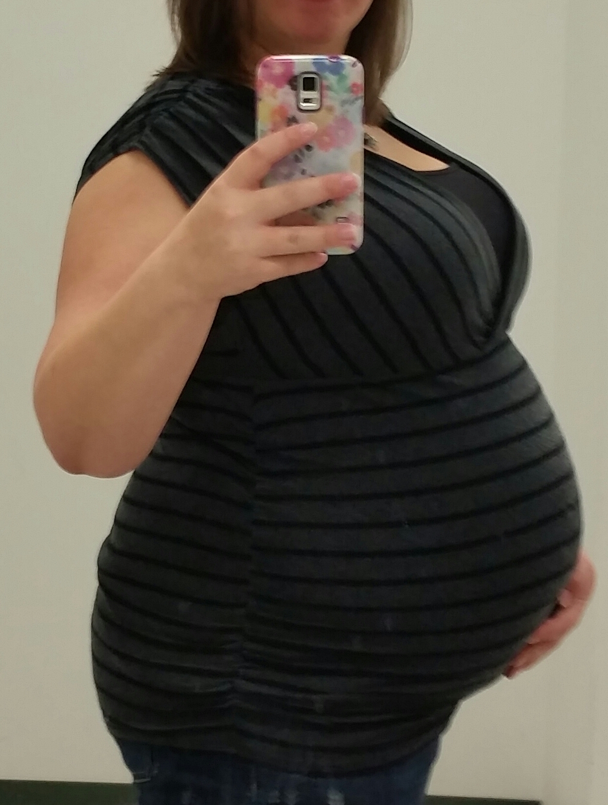 This was taken today at 32+2. I think it's going to be sideways. I'm on mobile so I can't flip it (Yep sideways. .. ugh)