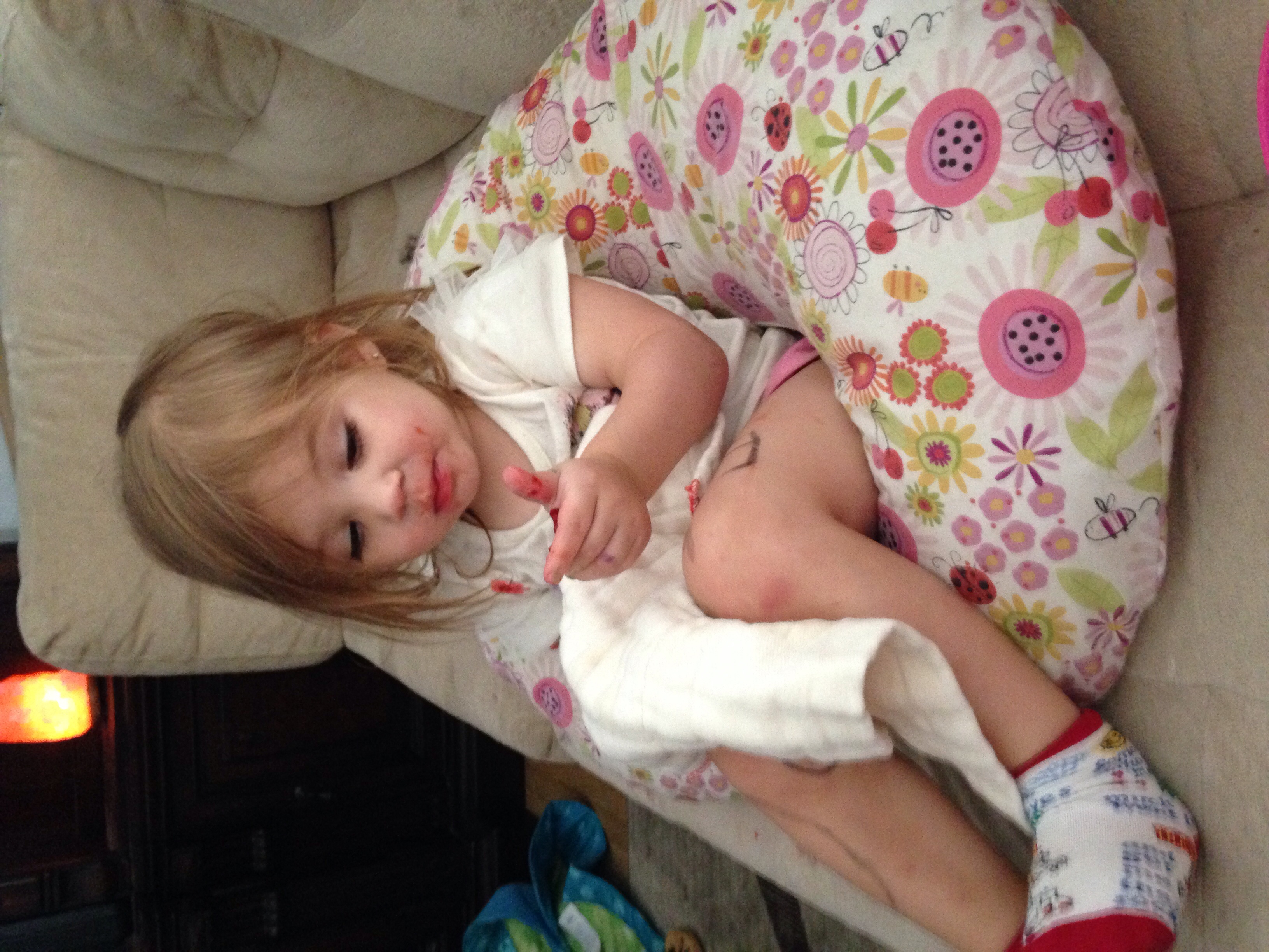 Thanks. Lol DH called me because I wasn't answering. I was giving the girls a bath, which I why I didn't answer my text. I had just sent him a picture. Instead of him thinking oh gee DD1 is eating strawberries, in DHs mind knowing our accident prone daughter he thought she had bitten her tongue off! Here's the picture