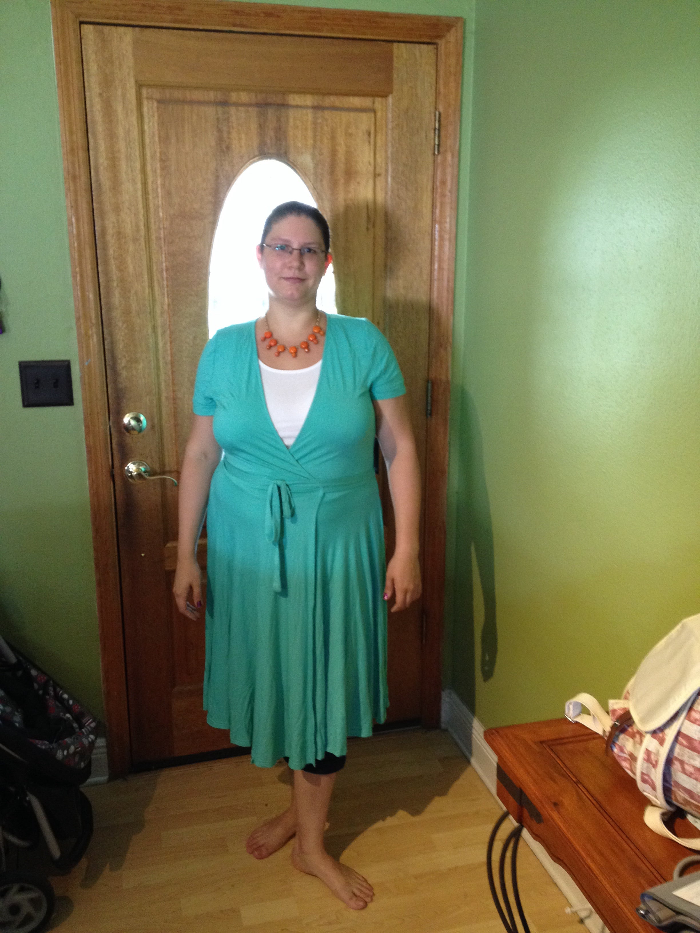 Finally, the wrap dress. Loved the color, hated the fit. I'm also wearing the necklace they sent in this pic. Orange is very much not my color.