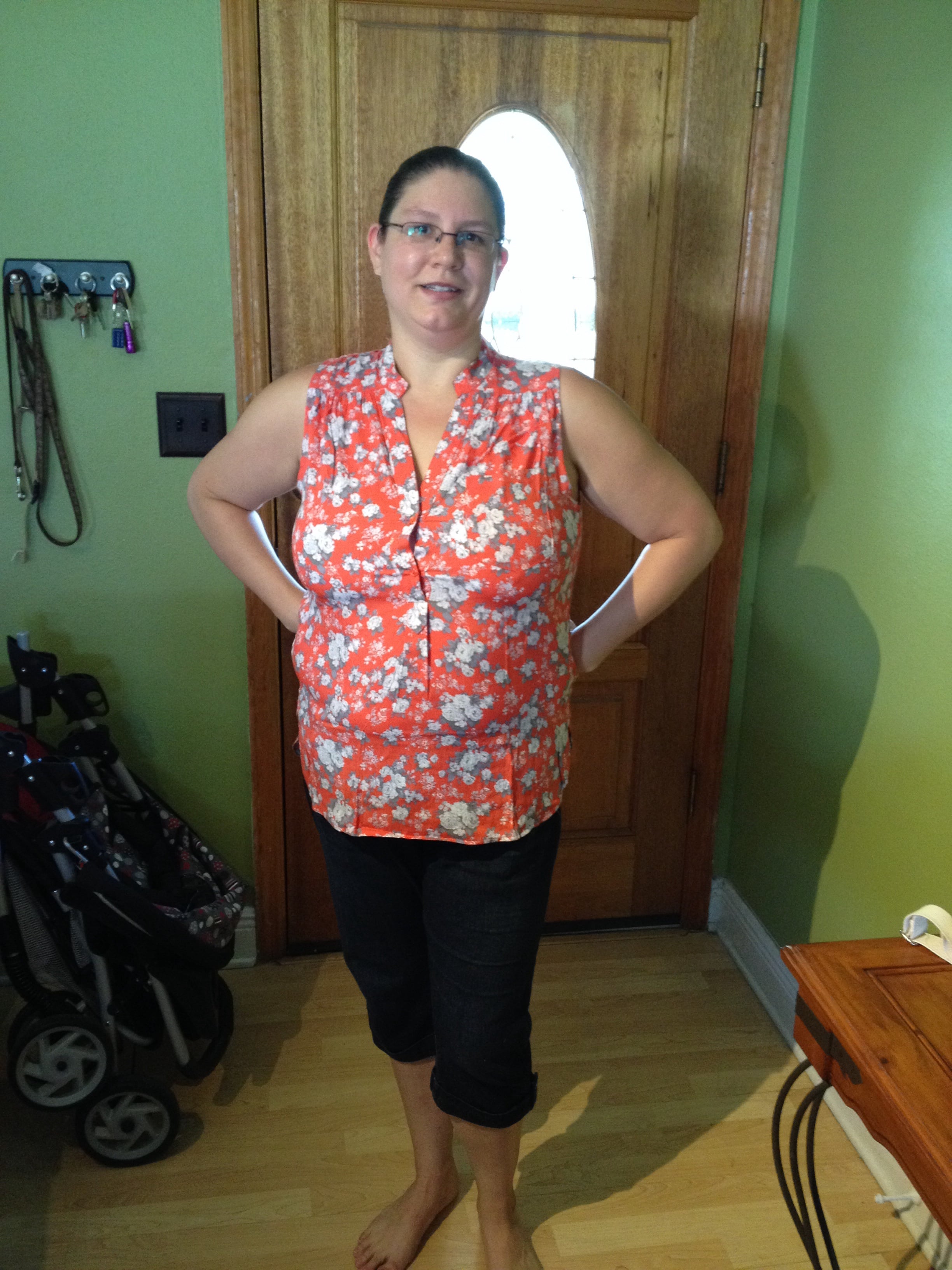 Next was the floral top. I never would have tried this on in a store, but I actually thought it was cute (and nursing friendly!). Unfortunately, the buttons gapped terribly at the bust.