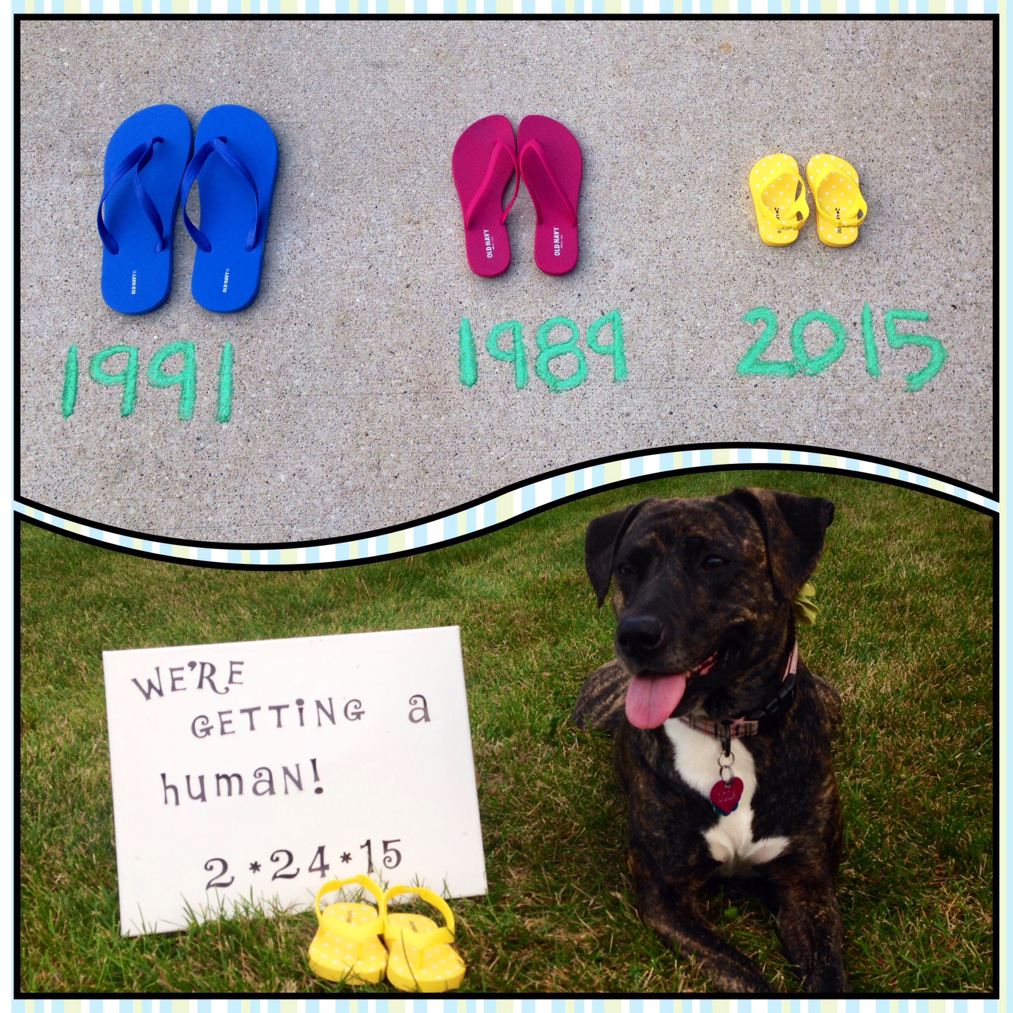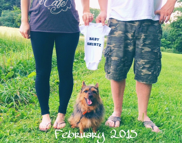 I'll be 11 weeks Tuesday and am also having an appt for the heartbeat and tests the same day, if all goes well that's when we'll go public. I didn't want to do Facebook but my husband does. Most people at my work already know since it's hard not to notice my multiple trips to the bathroom each day. Here's our announcement picture for Facebook.