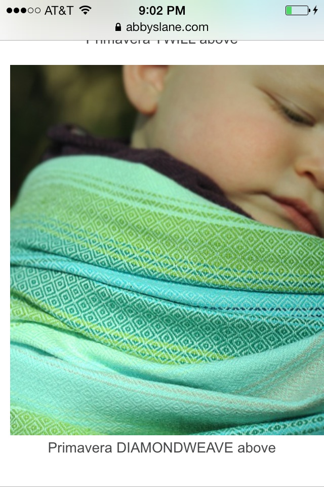 Babywearing seriously saved my life and sanity with dd, so we are excited to babywearing with little girl number 2 as well. I mostly used a stretchy Boba wrap with her when she was little and a SSC (soft structured carrier- mostly a babyhawk mei tai and an Ergo) when she was older. I have been looking into getting a woven wrap (mostly because you can do more wrapping styles with them/ wrap for longer than just the first few months-- wovens can be used up to toddler years), and a friend in a local babywearing group told be about Abby's Lane.