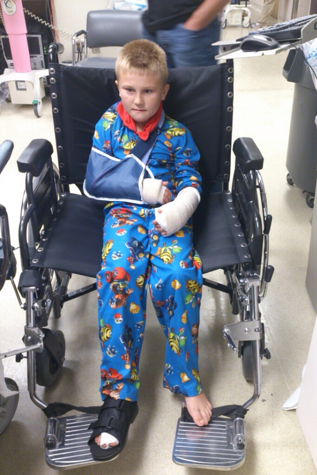 @TaterTat3)... He isn't. My 9 year old nephew had a broken ankle/foot and two broken wrists. My sister will have surgery on her leg and ankle on Thursday.