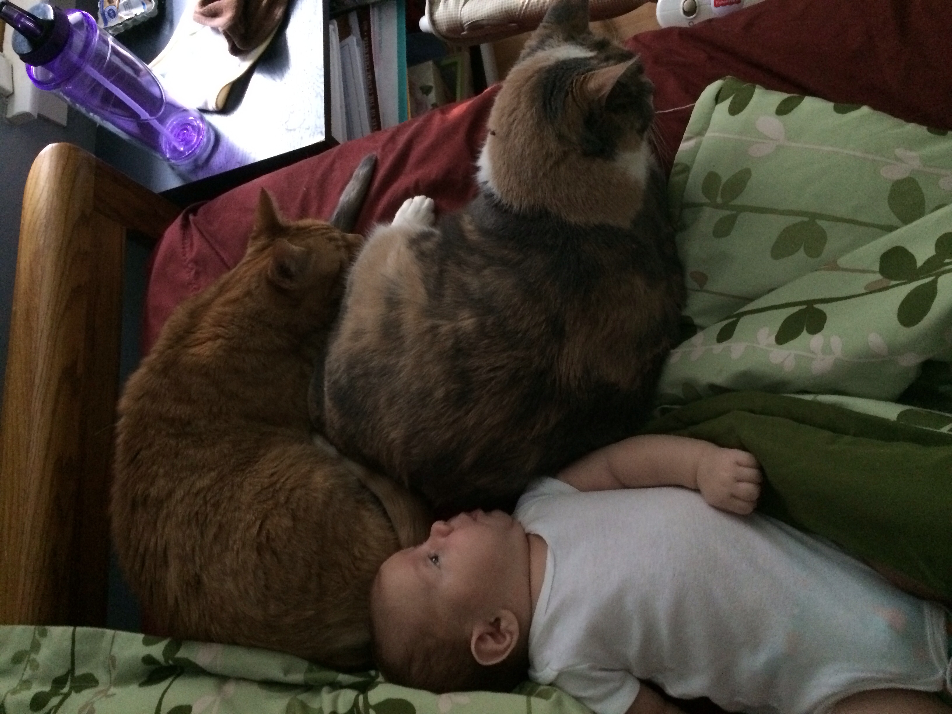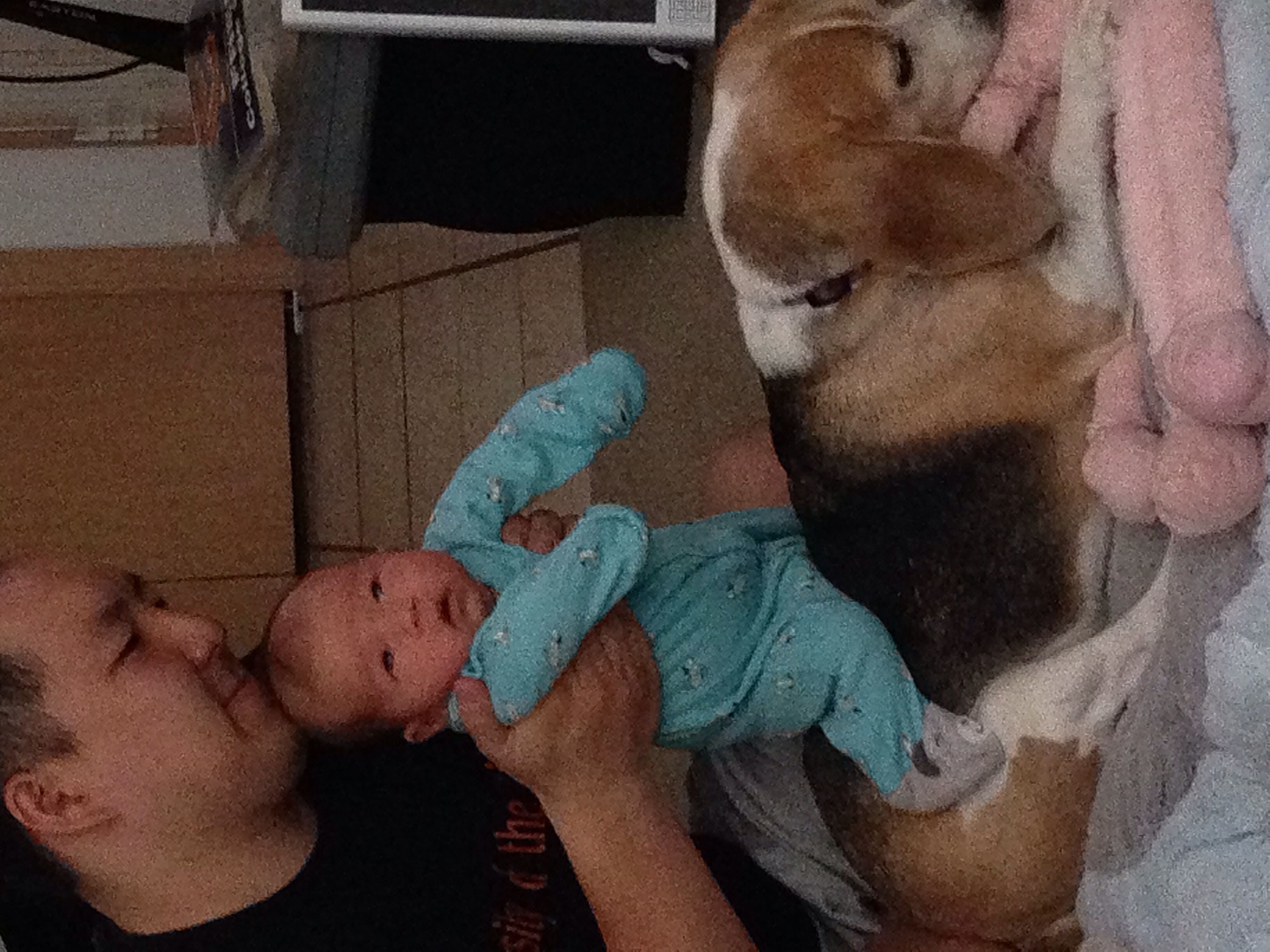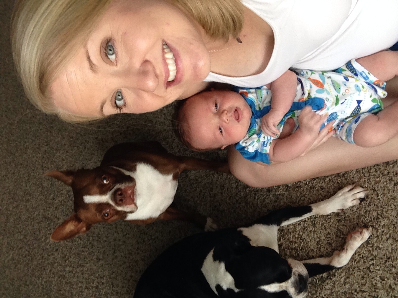 Family selfie minus DH. My dogs just love Corbin! Macey, the black one gets ticked if I don't immediately get the baby when he's fussing. Like she'll go in his room, come out, stare at me & whine. I've actually caught myself explaining my mothering to the damn dog. "Macey, he's just fussing, he's not actually crying, if he doesn't go to sleep in a few minutes I'll go get him." Then I'm like, it's a friggin dog! Lol!