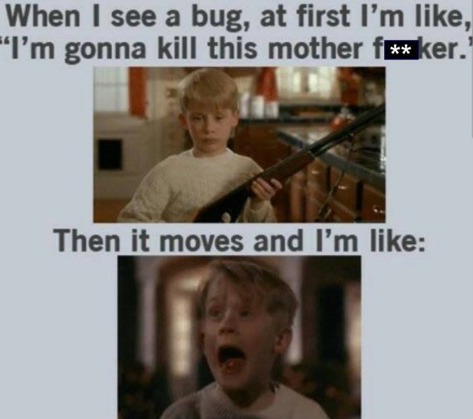 I am okay if DH is not home. But if he is I freak out. Tonight we had a big black bug and I saw it. DH was half asleep when I started freaking out. It was like my brain just stopped and I watched the bug and was freaking out more. Our dog was looking at me like I was crazy. DH half asleep told keep to get paper towel and I still could not get it. He found it, grabbed it, and thank goodness killed it. I am still scared to walk in the hallway thinking another one us waiting to laugh at me.