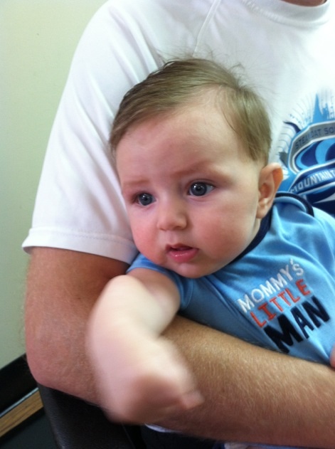 Sounds like things are looking up in the RTT. I had a great day at work. Mgmt bought us all lunch and root beer floats, then sent us home early. I used the extra time to take DS for his first haircut..... At almost 4 mos. dd was 18 months before she needed an official haircut! Then we bought dd some shinguards for her soccer and went to BW3 for dinner and beer. Nom!