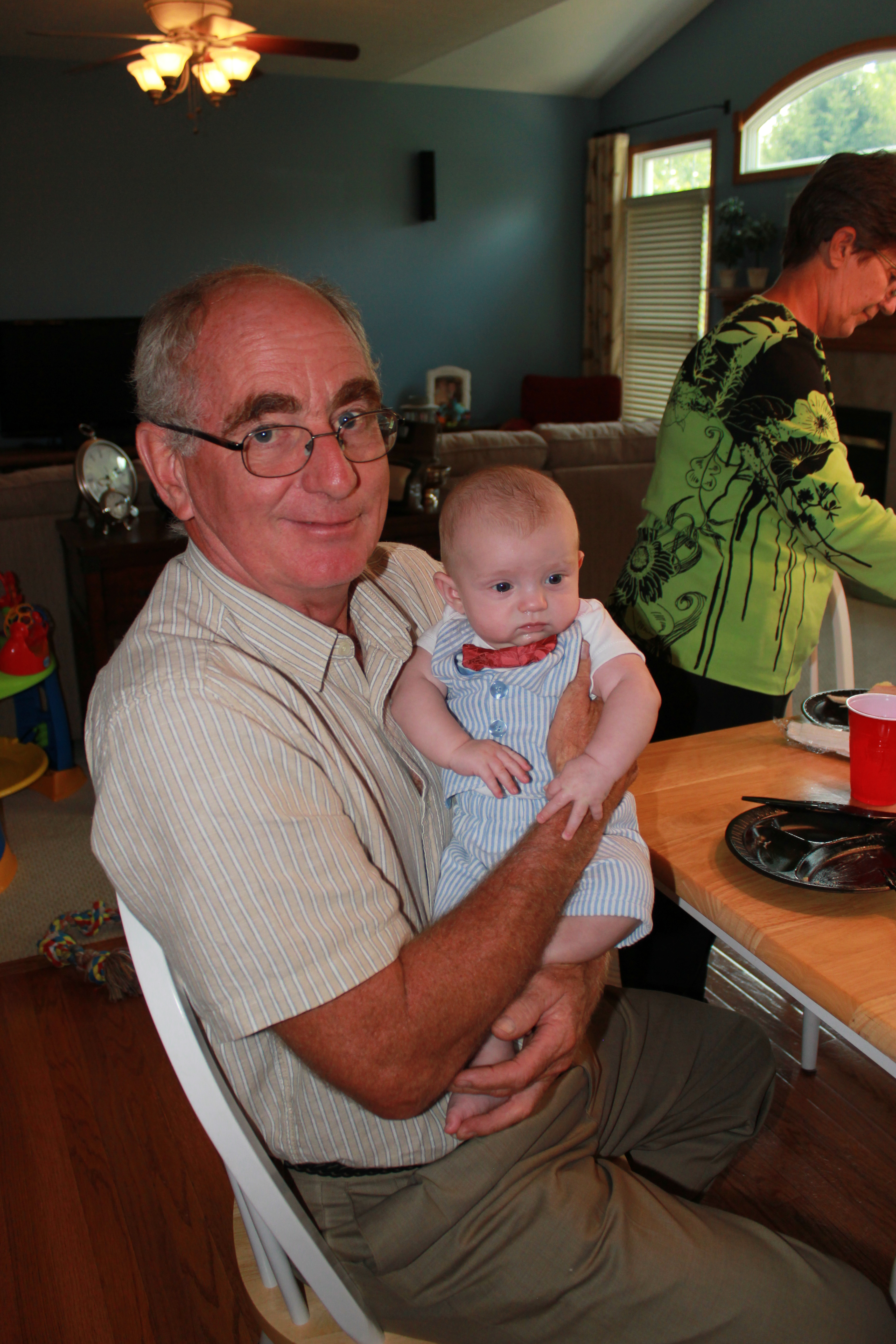Ta-da! Here's the photo's I previously failed at attaching... The color in the one is goofy, so I added the second one of Aiden with his Pap Cavanaugh :-)