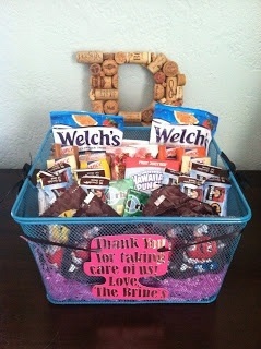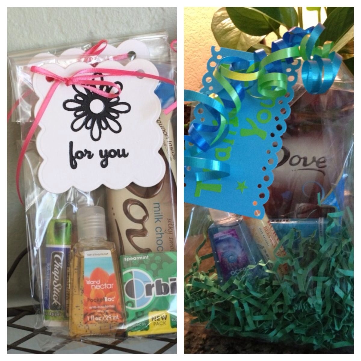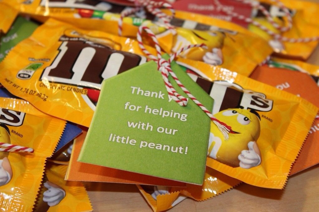 Or you can do something as simple as a single candy bar with a witty tag attatched to it (like the M & Ms below)-- google has a witty saying for pretty much every candy bar out there. I plan on doing individual baggies with a little blank note tag on each one that I will write a personal message on before giving it to the particular nurse or doctor.
