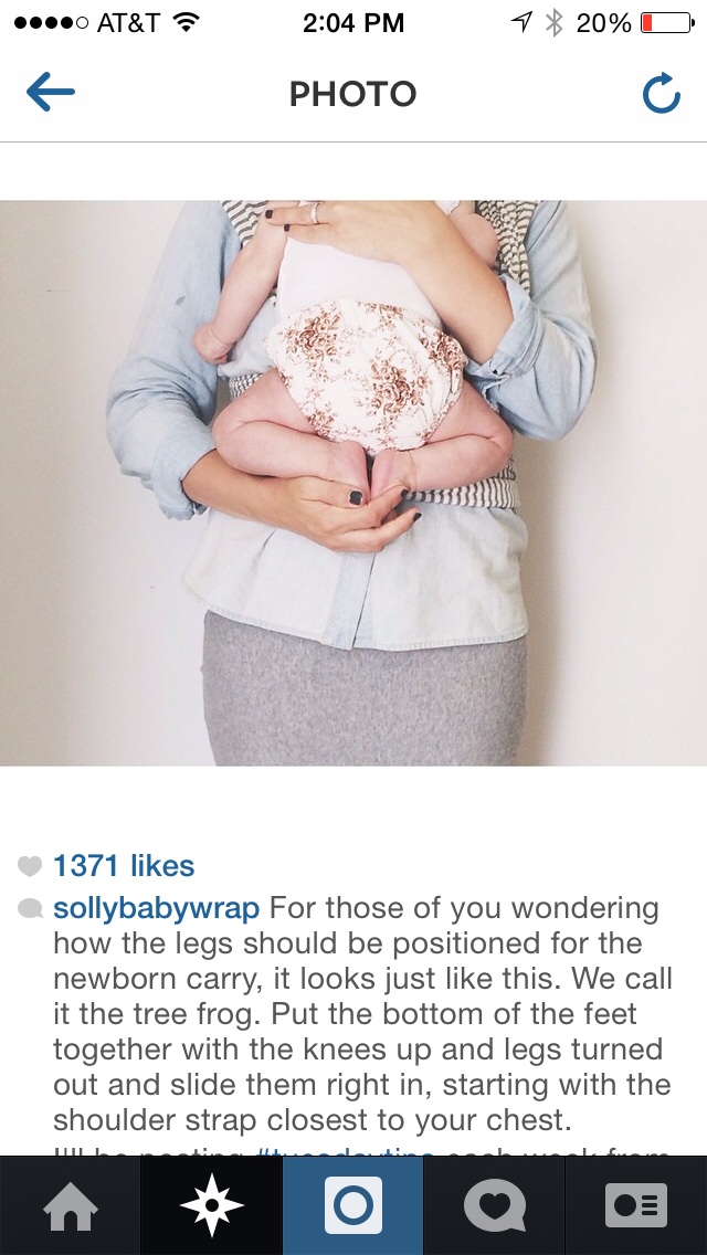 By the way found this demonstration from Solly Baby Wrap on how to front carry a newborn. Did this position with LO and now he magically no longer feels squished in the front carry. After reading the comments on this Instagram photo I'm super happy I didn't carry him around all squished like he felt before. Had no idea infants could get hip dysplasia from an improper carry, although I did realize having him feel uncomfortable in there could be no good for him.
