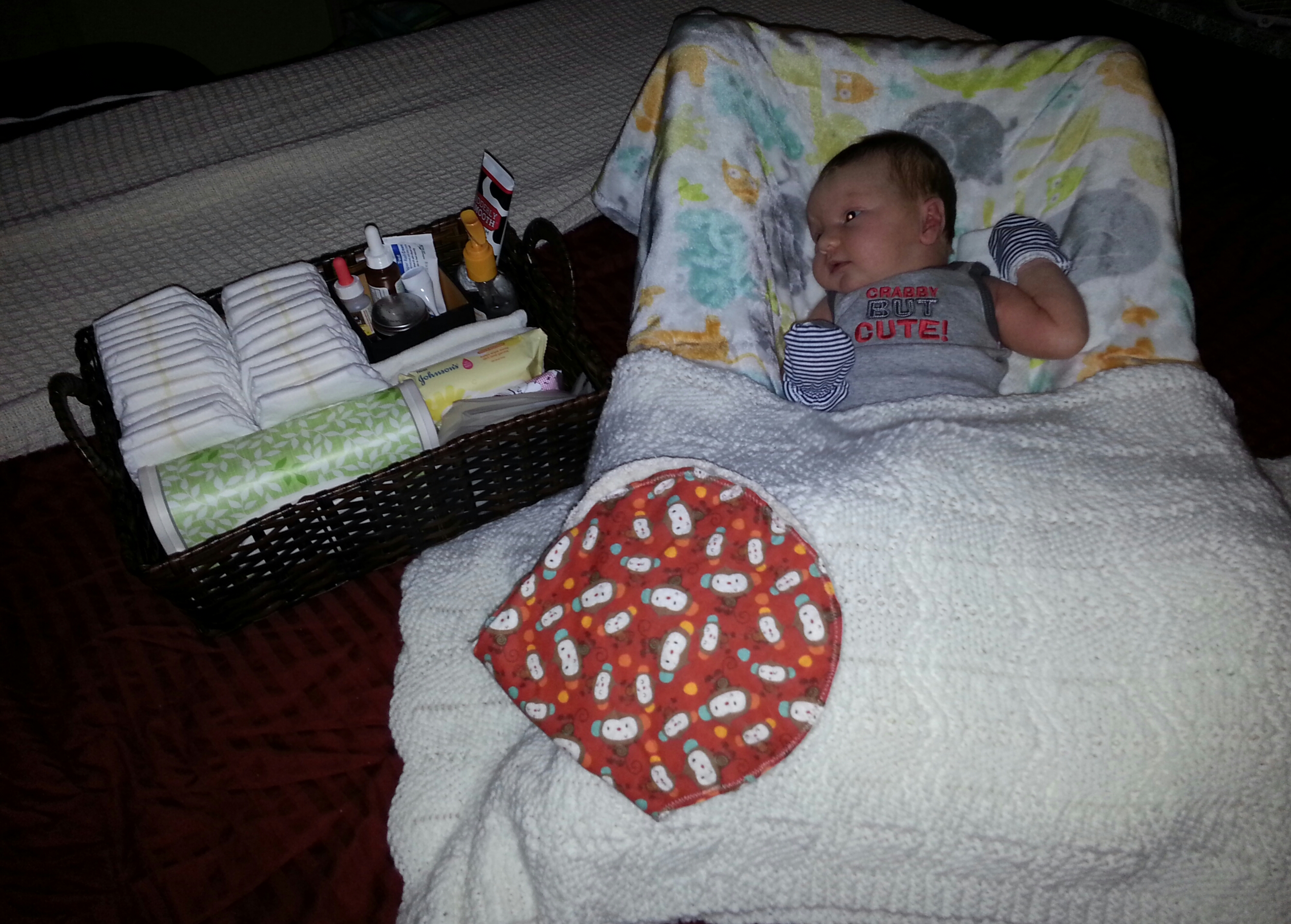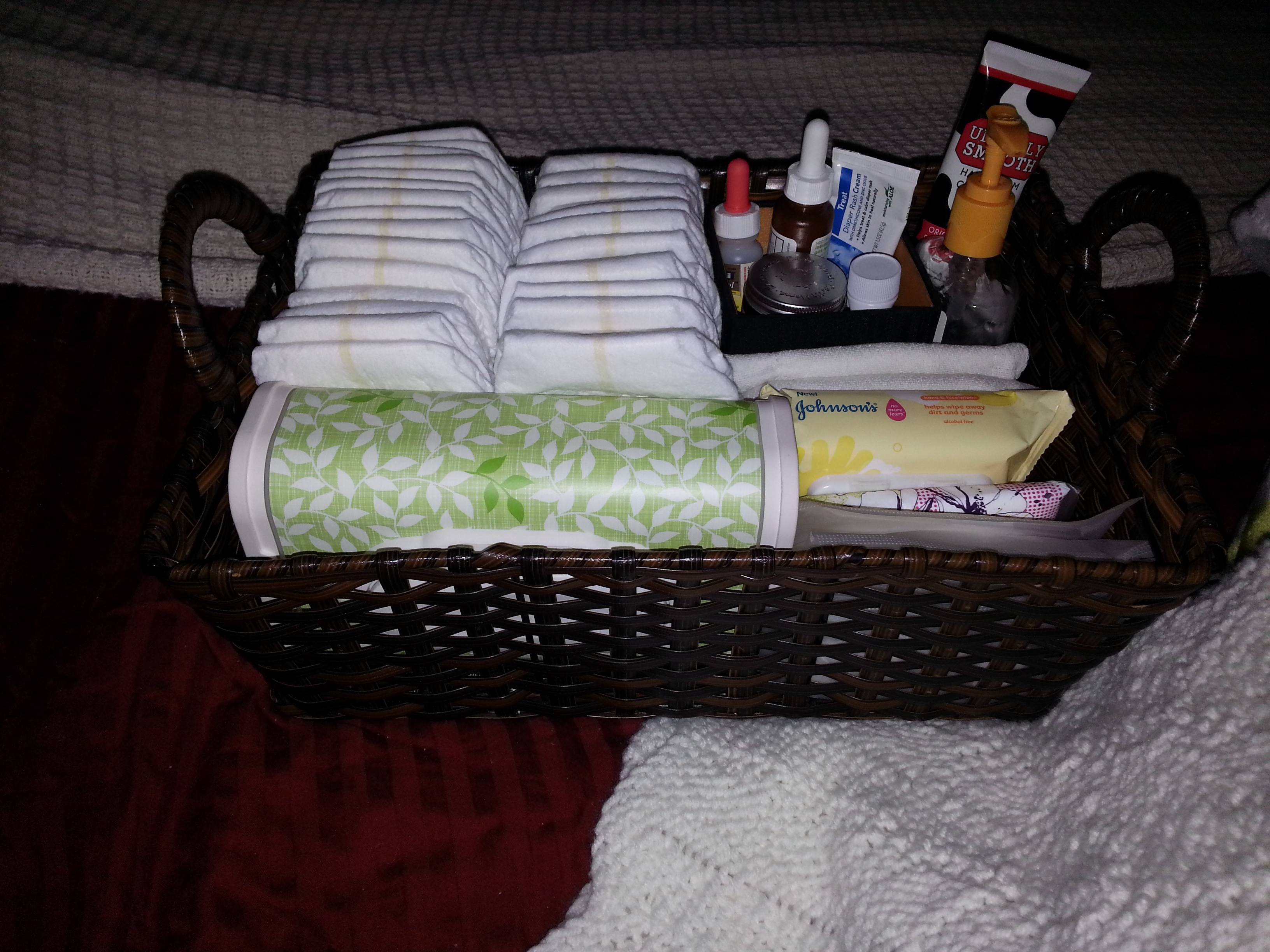 The only thing I can think of to add would be a small portable changing mat. We do cloth so my basket would look a little different, but that's a great list.