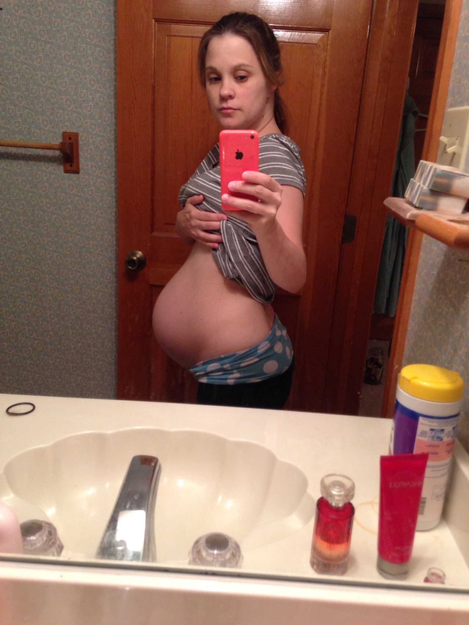 Today though. My belly is flat on the top and I'm wondering if she is somehow transverse right now.