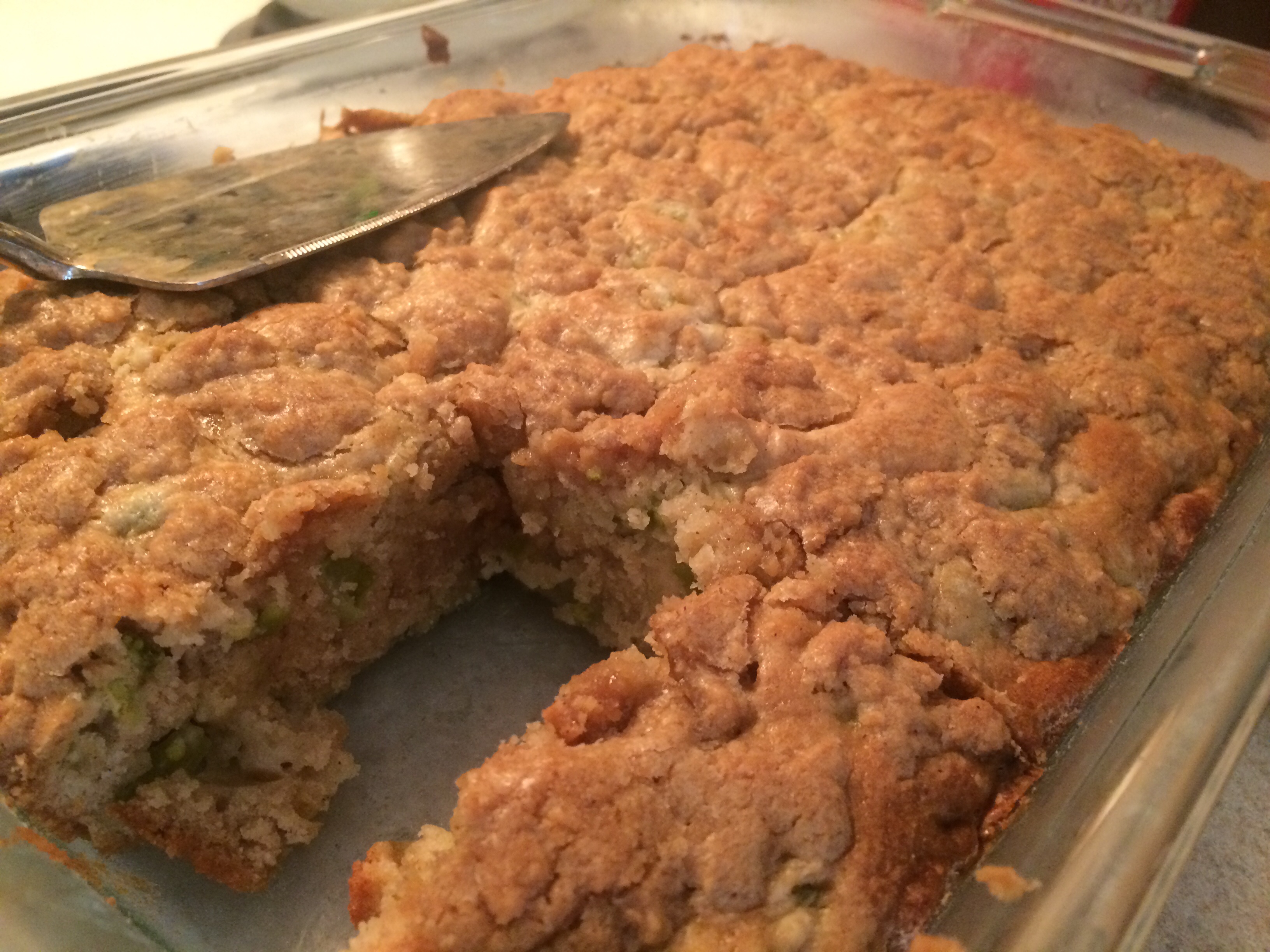 Edited to fix typo and add that I did half and half white sugar and brown sugar. And decreased it by 1/4 C but that bit went on as the topping