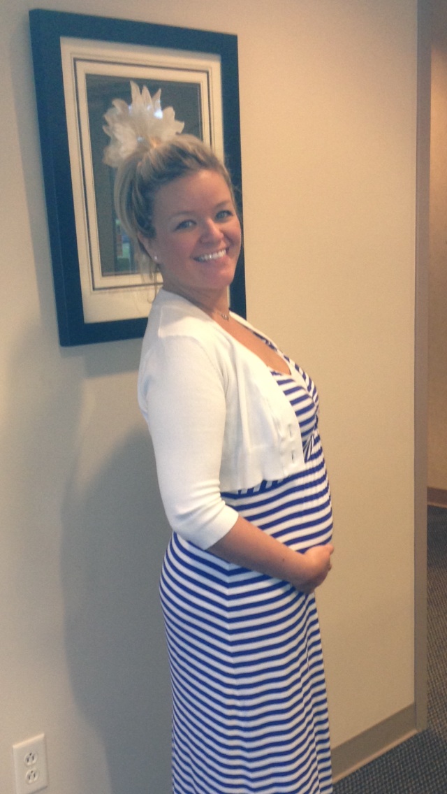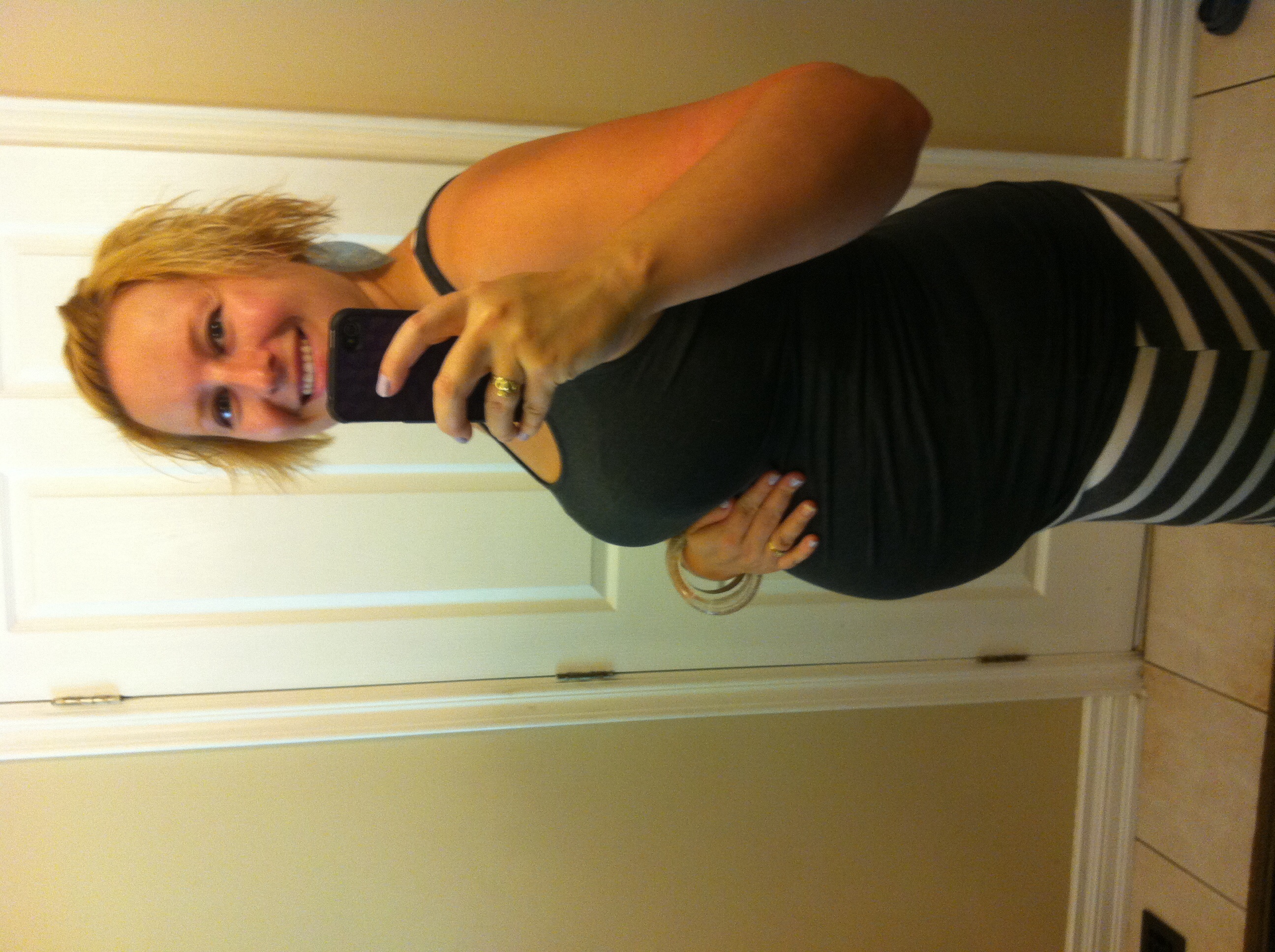 As a side note: I definitely had someone ask, "When are you due again? November, right?" Do I seriously look 2 months more pregnant than I am? LOL. The good news is, I put on my pre-pregnancy pants the other night just to see if they fit and I could still wear them with a belly band if I really wanted!