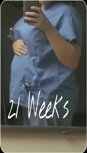 Here I am at 21w3d (it was on Sunday). Maybe one of these days I'll be brave enough to post a picture of my face