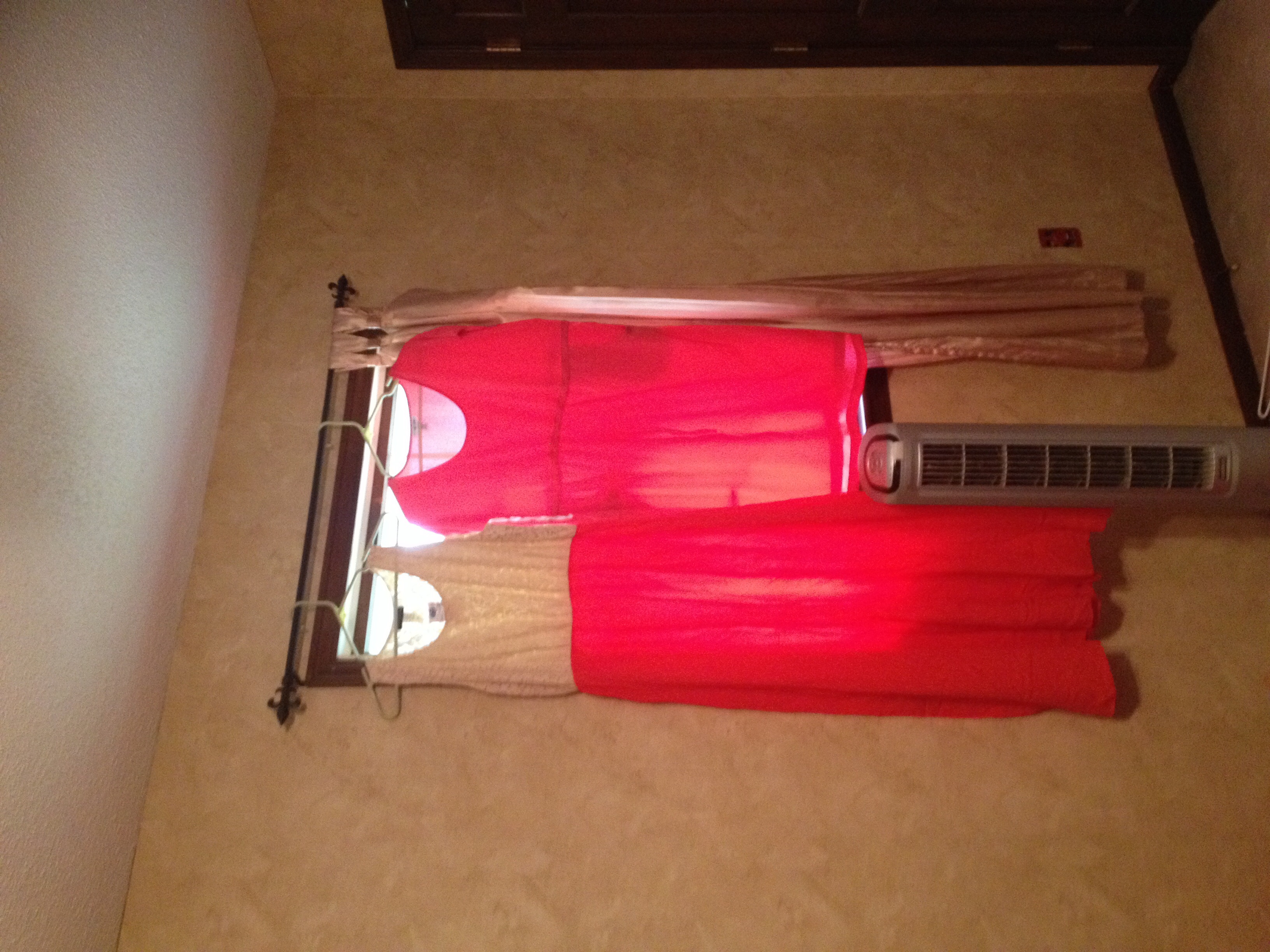 Here's a pic, it was the only good place I could think of to hang them. You can tell though that they are close in color, the short is slightly more pink & both are airy.