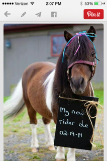 After the parents and grandparents know then I want to use my horses to do an announcement. Have a little sign or something saying "My new rider due on April 2015" It is kind of hard for me to do the horse once before since my horses stay at my grandparents.