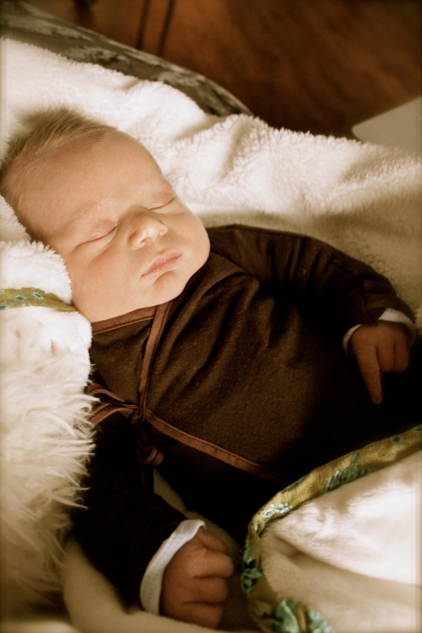 Since I had a homebirth, there was no coming home outfit, but here was his first going out outfit on day 3. I bought a bunch of these neutral organic bamboo kimonos and matching tights/hats/booties from a local company called westcoastbaby. The blanket is amazing plush and from petunia picklebottom.