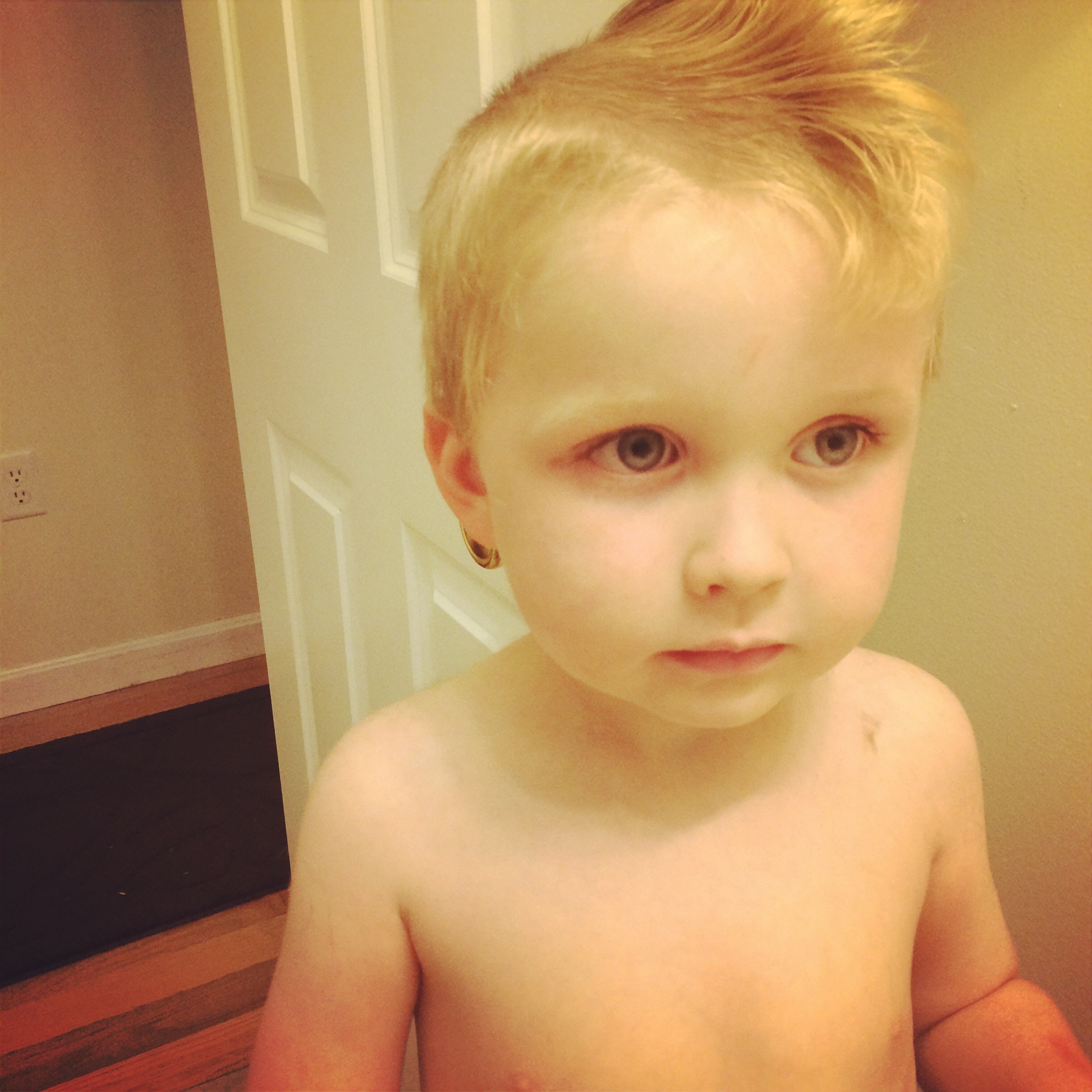 DS wanted a mohawk so I gave him one on Sunday. He loves it. He doesn't want to wet his hair because he doesn't want to wash it away (have had to work to convince him mohawks aren't like temporary tattoos).