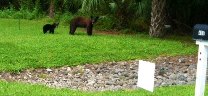 My MIL got this pic leaving our place the other day, 2 houses down. The cub is super cute but stay away from mine, would ya?!