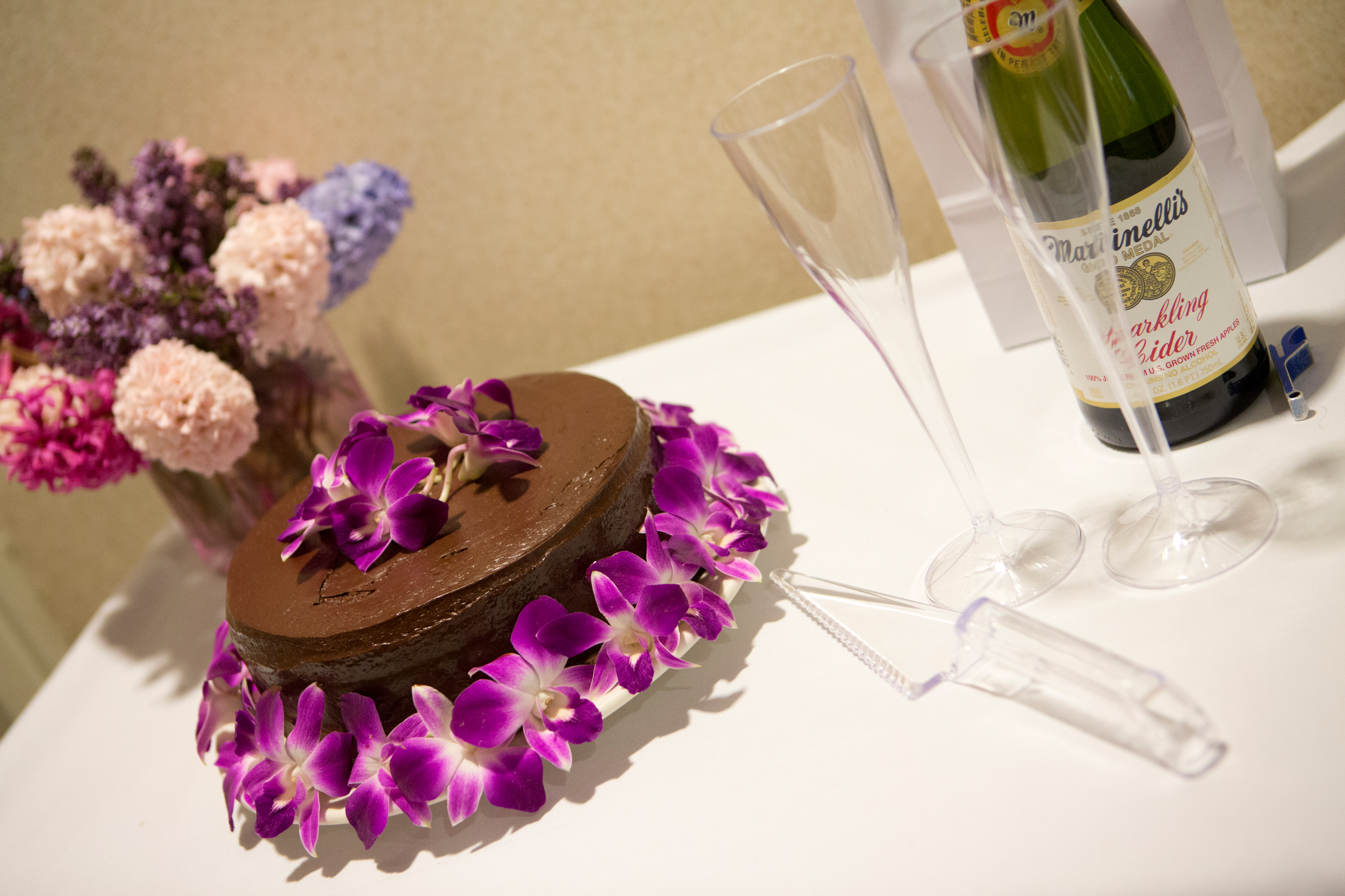 How about your cake? Chocolate and provided by the hospital cafeteria.