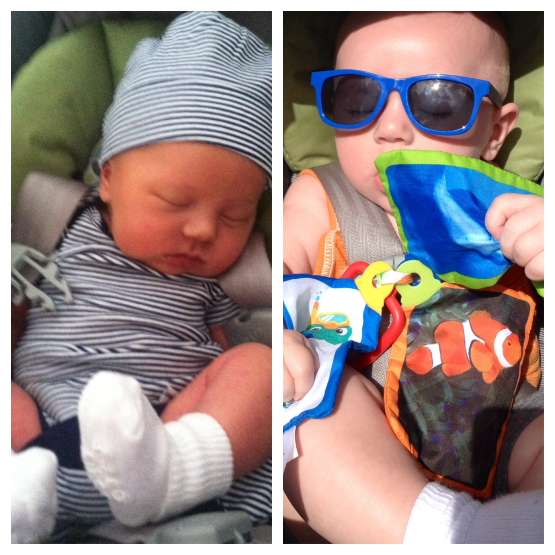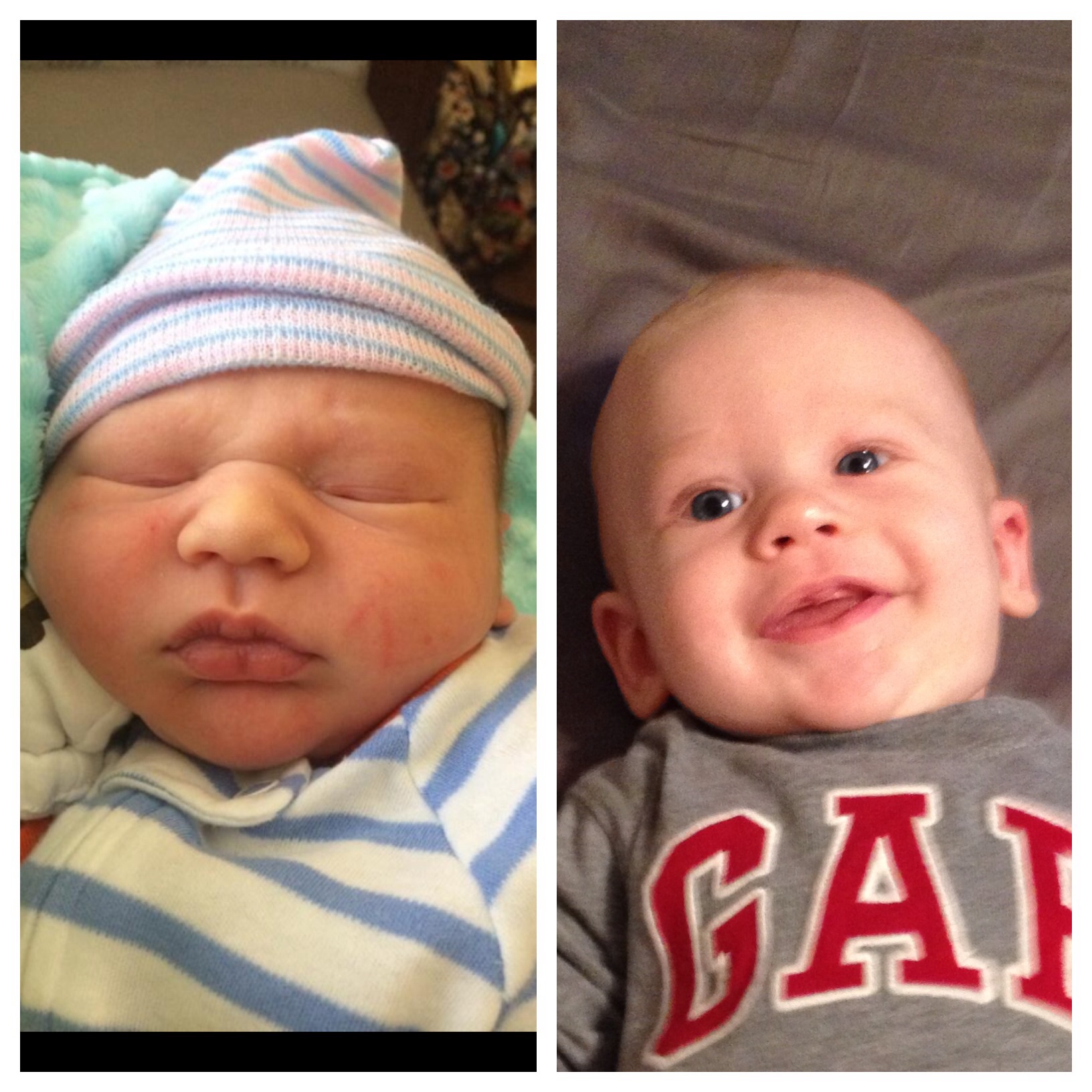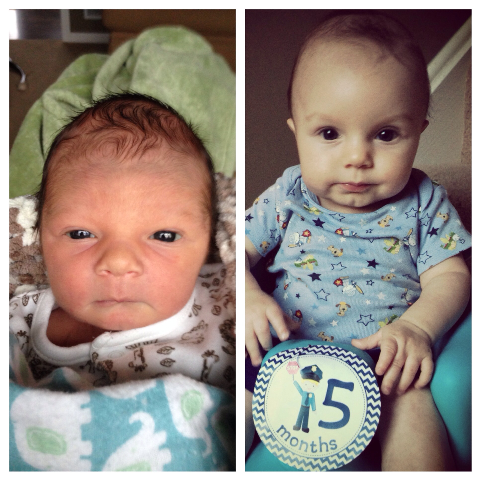 I love comparing side by side pictures of Chase and see how he has changed especially on days like today when he turns 5 months! Our babies are getting so big! Let's see your comparison shots:)