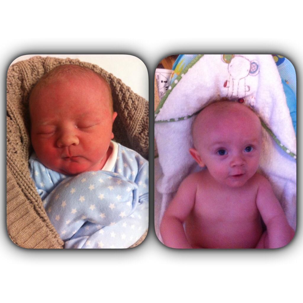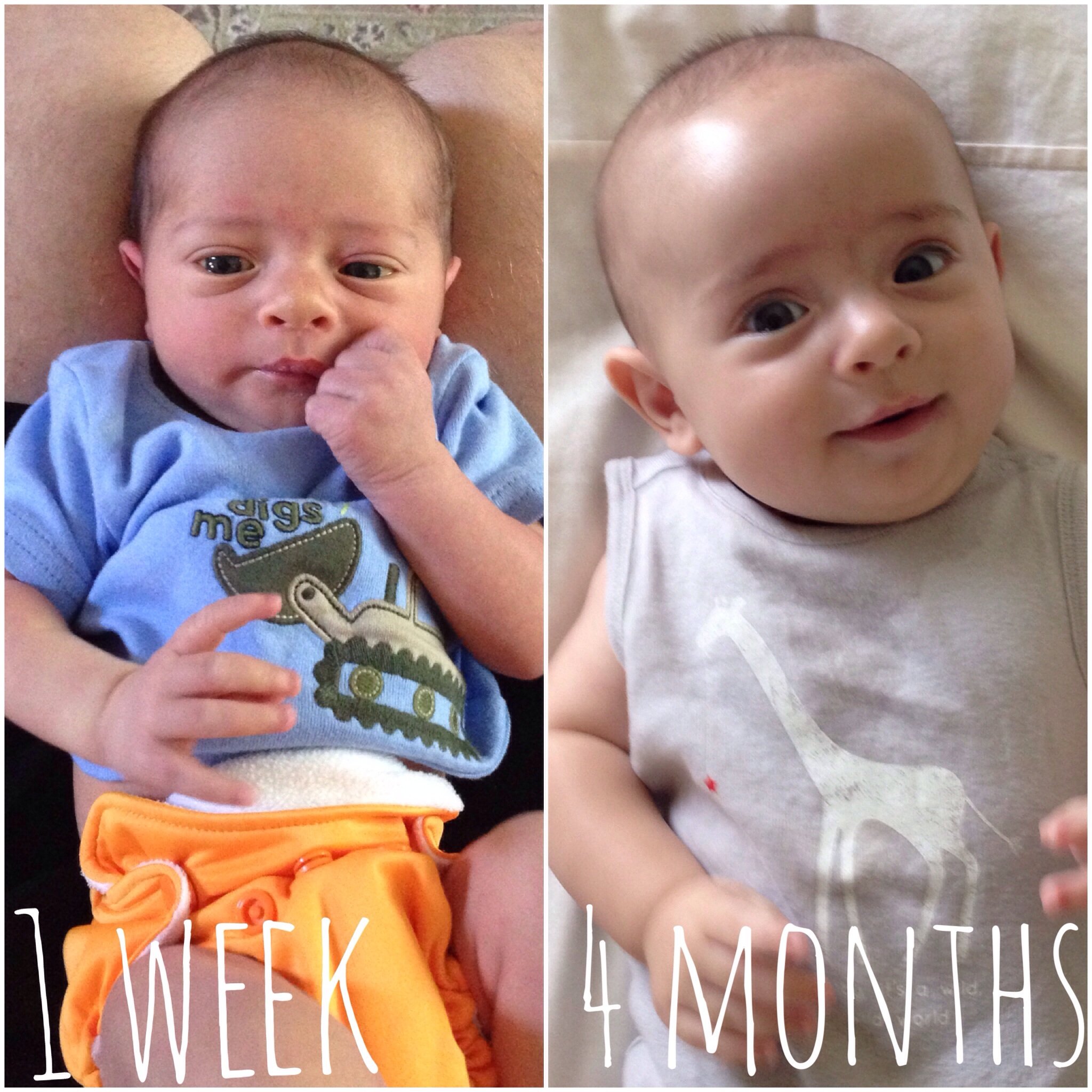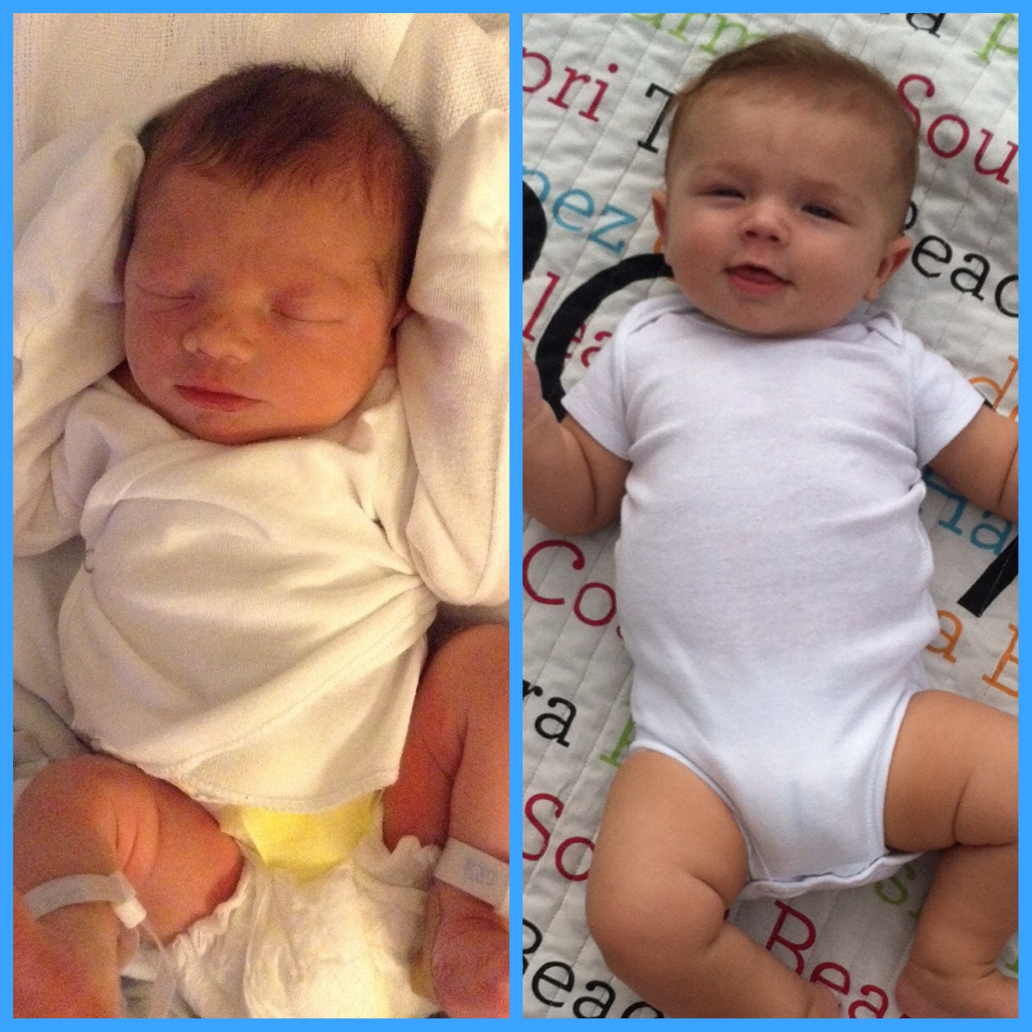 I love comparing side by side pictures of Chase and see how he has changed especially on days like today when he turns 5 months! Our babies are getting so big! Let's see your comparison shots:)