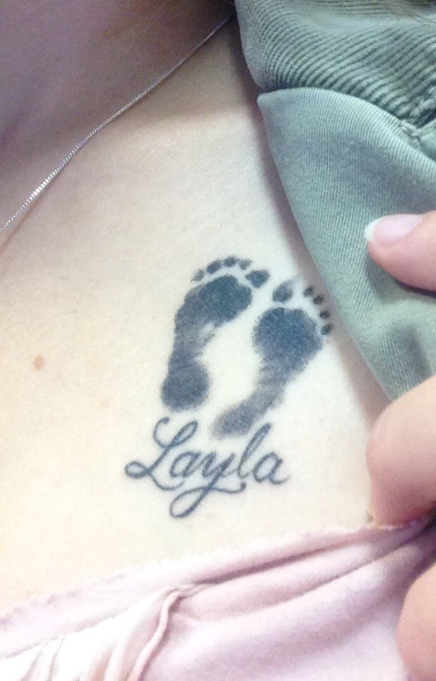 • I have my baby girl's footprints on my chest, near my heart while still being in an easily covered location for the workplace.