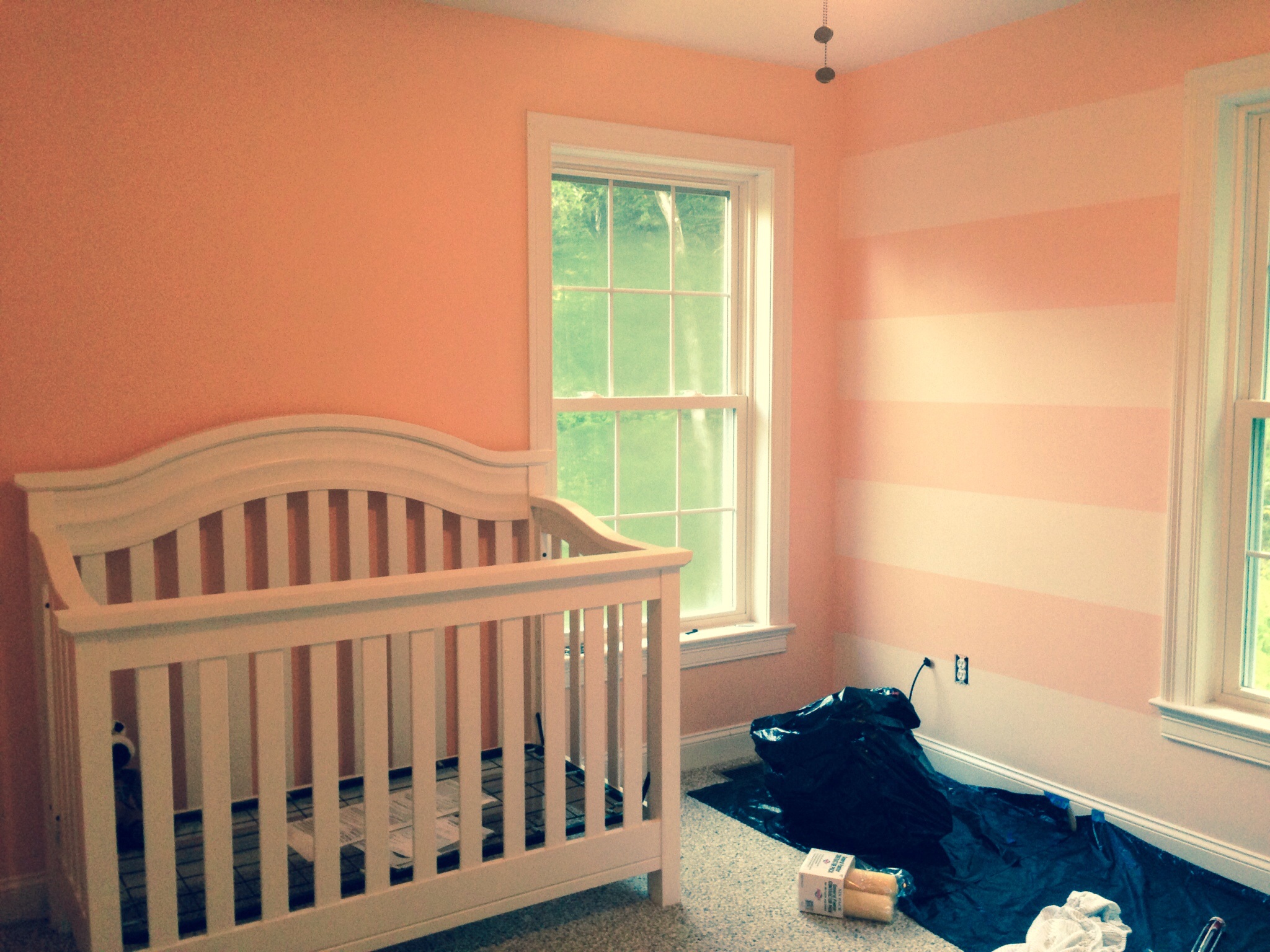 I have the room painted, new carpet installed and crib set up. I consider that partially done but there is still so much to do. I need curtains, a hamper, decorative items for the wall and some random pieces to finish out the room. I figure if I get it done by Oct I'm a happy camper!